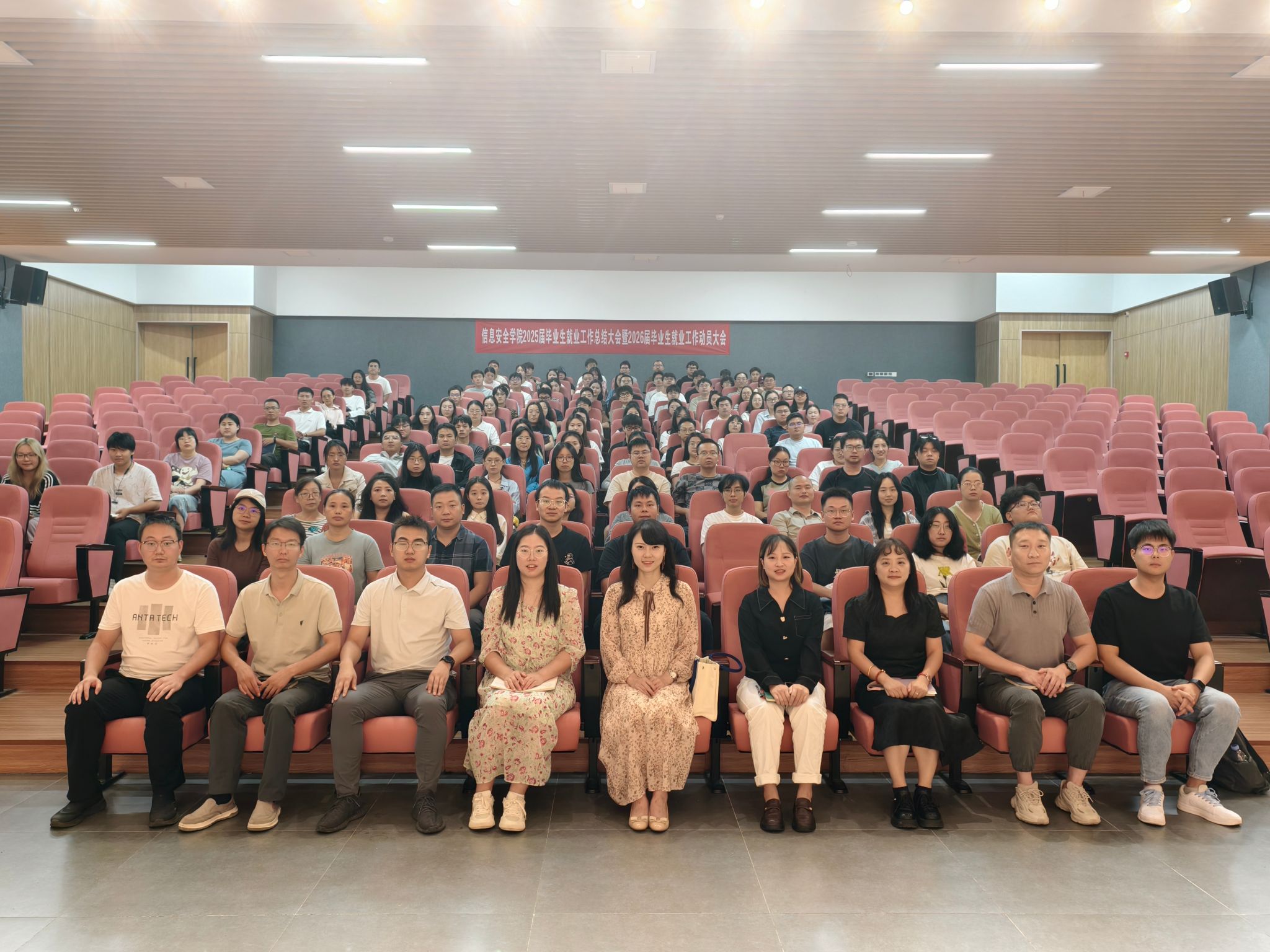 2025年9月24日12:30-13:30,信息安全学院在贤者楼131教室召开了2025届毕业生就业工作总结会暨2026届就业工作动员会,院长王宁、党总支副书记尹金维、代理教学副院长周小艳、党总支专职副书记田海燕,其他主要领导成员,以及2026届毕业生异科导师、毕业论文指导老师、辅导员参会。