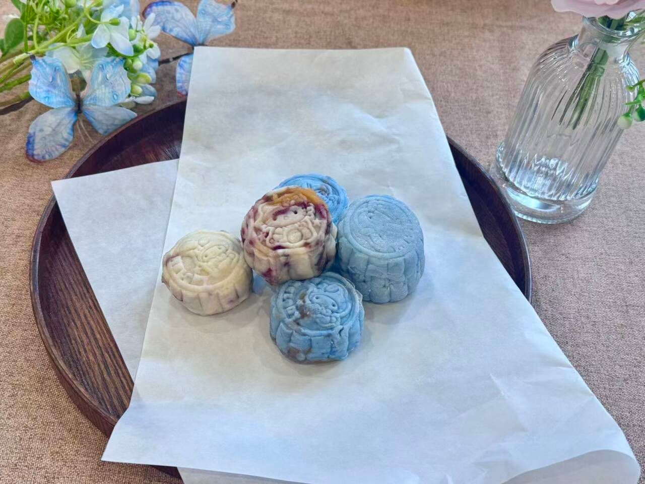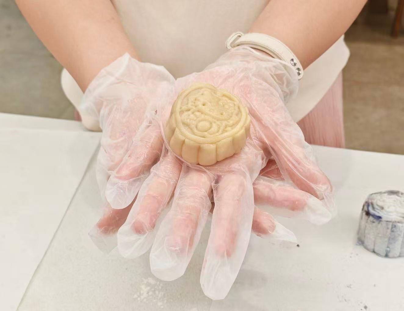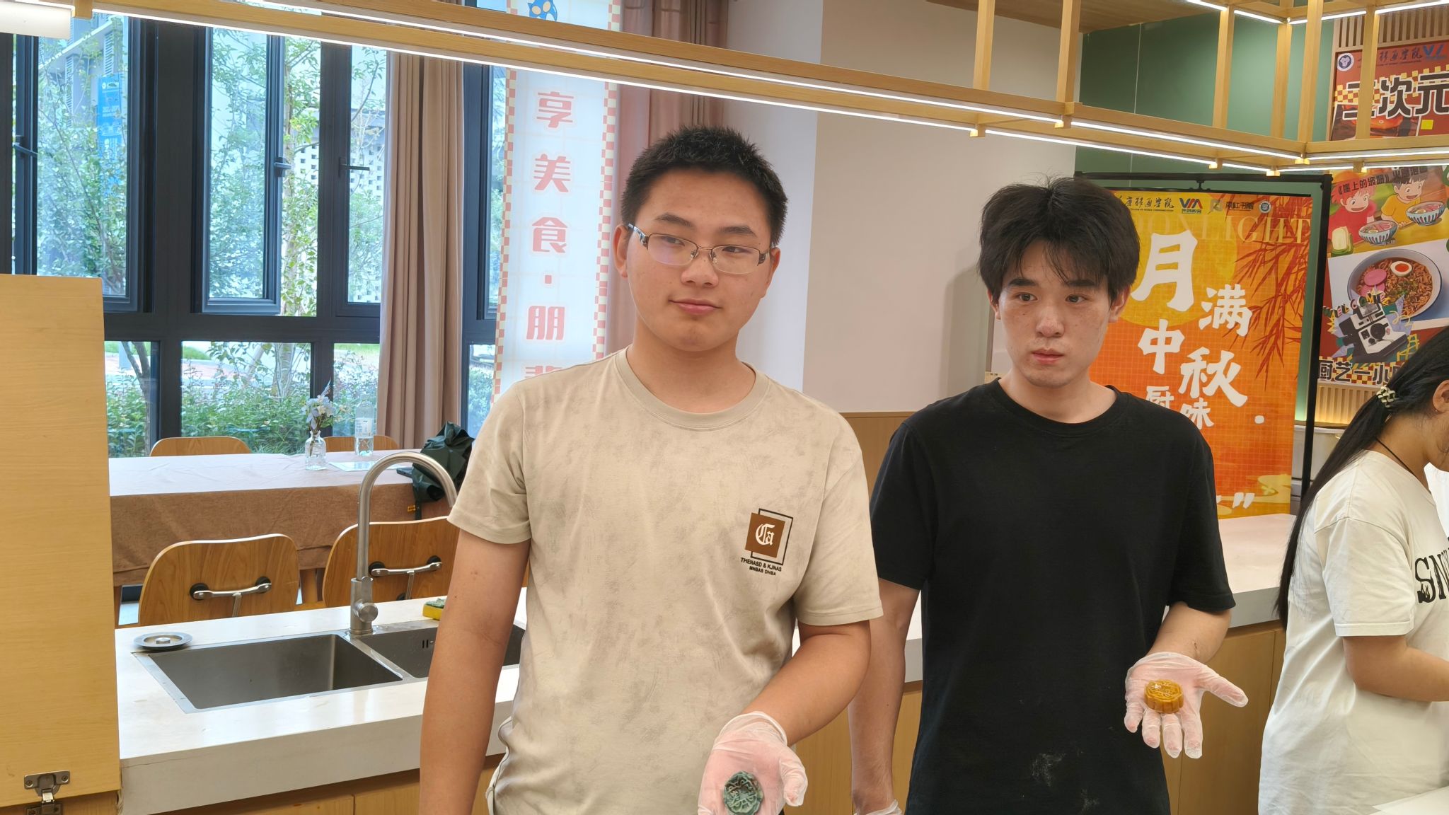 同学们分组领取食材后默契分工:揉制饼皮,指尖翻飞间揉出细腻质感;调配馅料,将传统豆沙与创新果味巧妙融合;还有选择制作冰皮月饼的,让清凉口感碰撞中秋暖意。