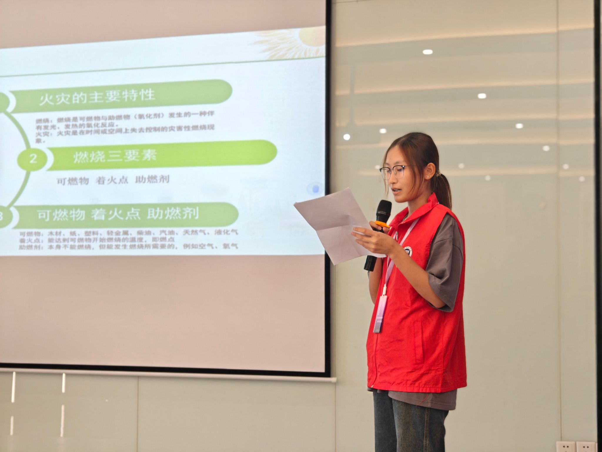 作品分享阶段,同学们展示作品并讲解对应消防知识,指导老师冯寅点评作品创意与知识准确性,还为表现突出者颁发定制奖状;活动最后,志愿者与同学们总结消防重点,合影留念,为培训营收尾。