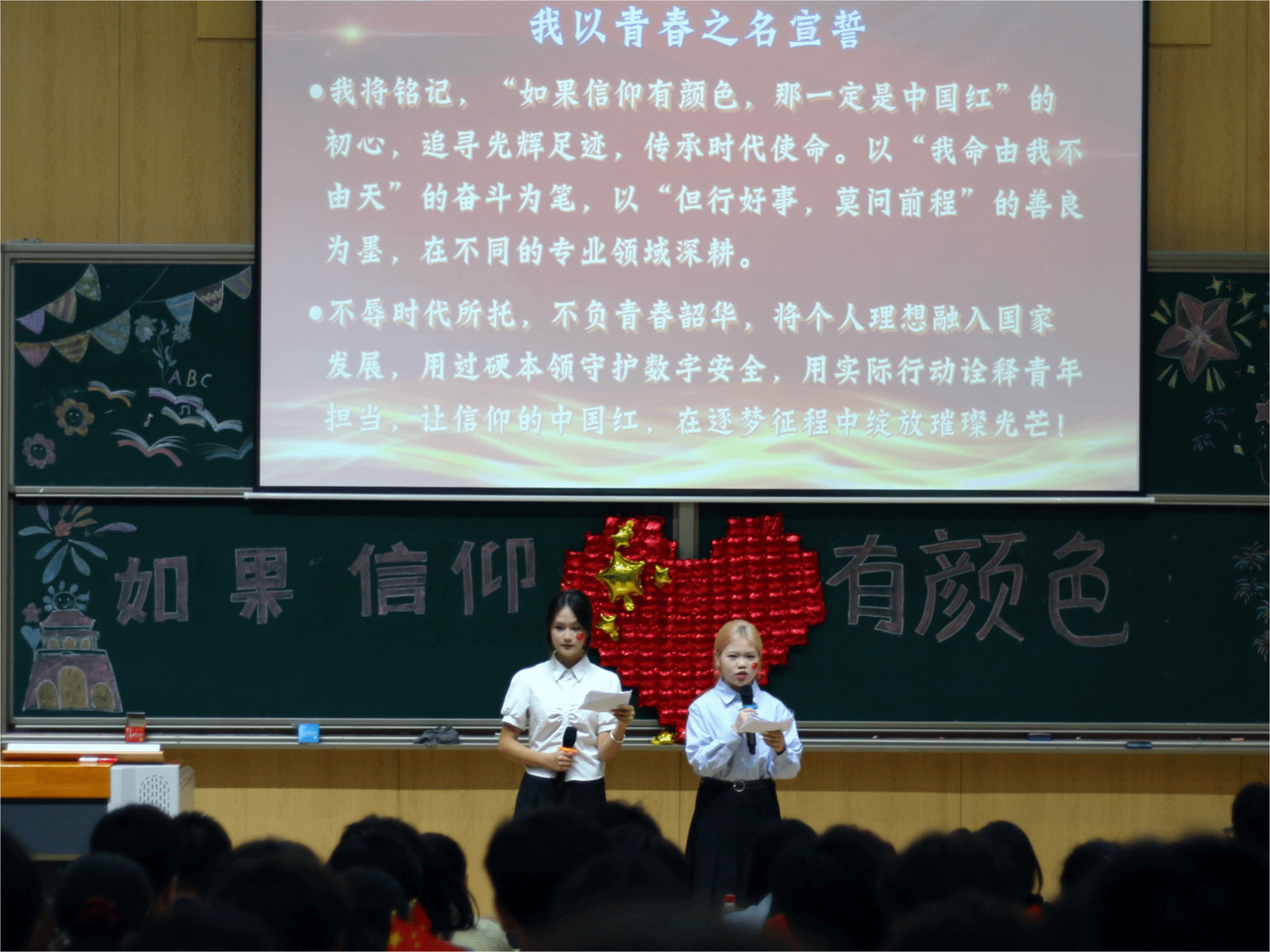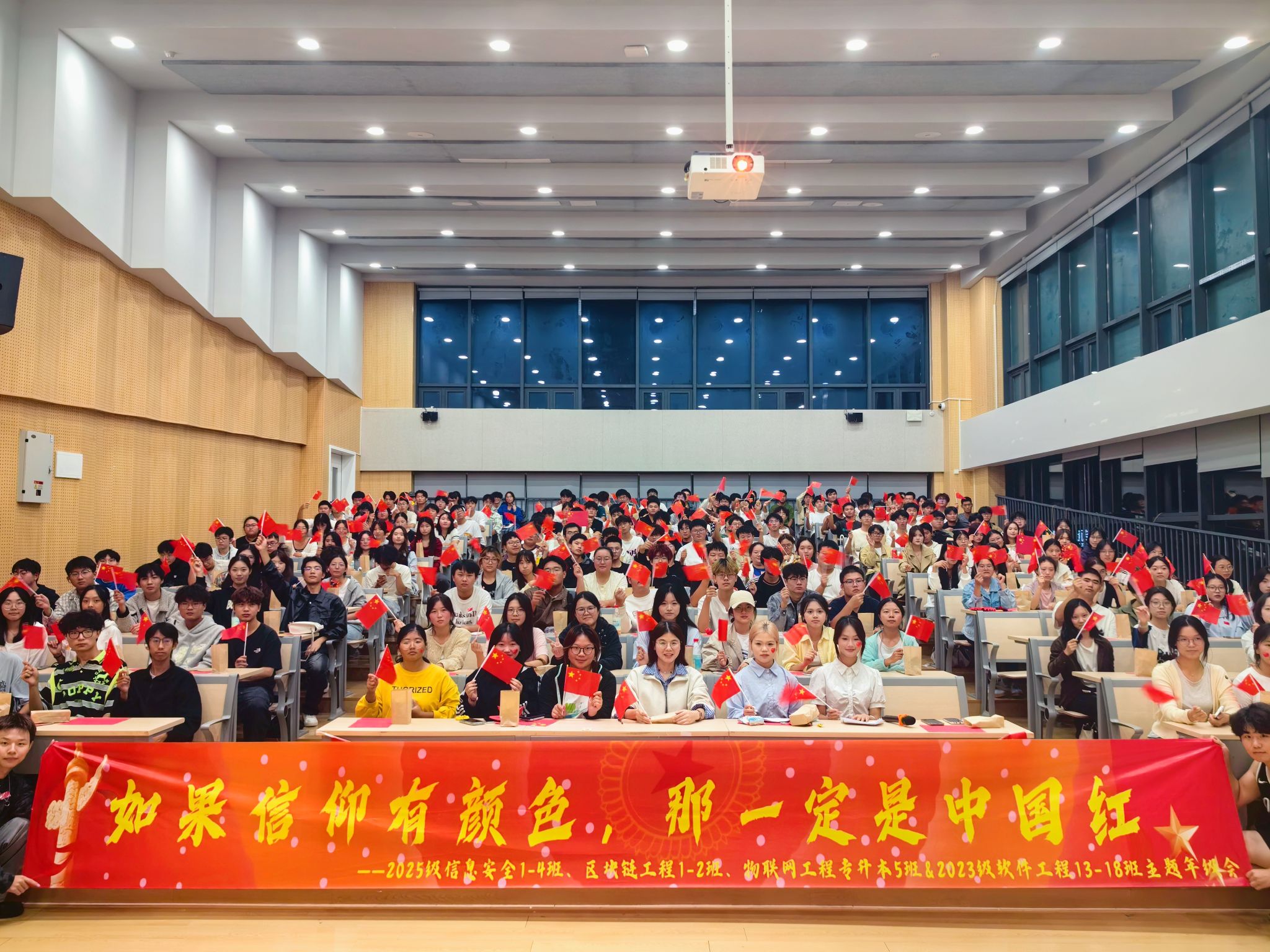 为激励同学们深刻体悟国家认同、勇担时代重任,坚定实现个人价值与国家发展的有机统一,2025级信息安全1-4班、区块链工程1-2班、物联网工程专升本5班&2023级软件工程13-18班于10月17日19:00在玉棠书院开展了“如果信仰有颜色”主题年级会,以沉浸式体验厚植家国情怀,以青春视角诠释信仰力量。