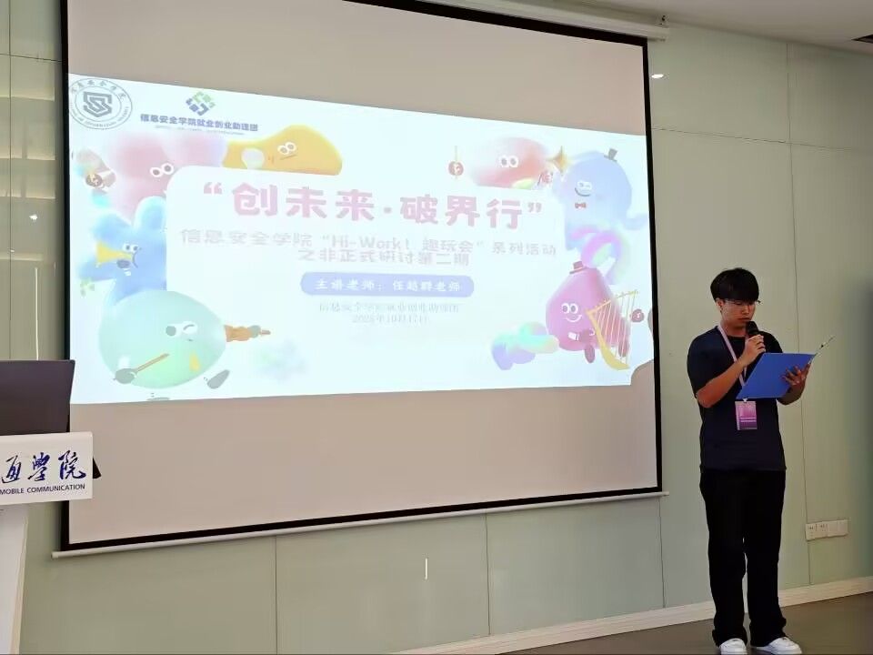 为助力大学生提升项目构思与团队协作能力,激发创新思维、夯实创业基础,信息安全学院团总支就业创业助理团于2025年10月17日12:30—14:30在观云书院·秋分多功能室开展“创未来·破界行”信息安全学院第三届“Hi-Work!趣玩会”系列活动之非正式研讨。本次活动以分组讨论、创意碰撞的形式,搭建共同探索项目的平台,让同学们在思维交锋中提升职场核心竞争力与创业素养。本次活动由陈思旭同学主持,共计40余人参与。