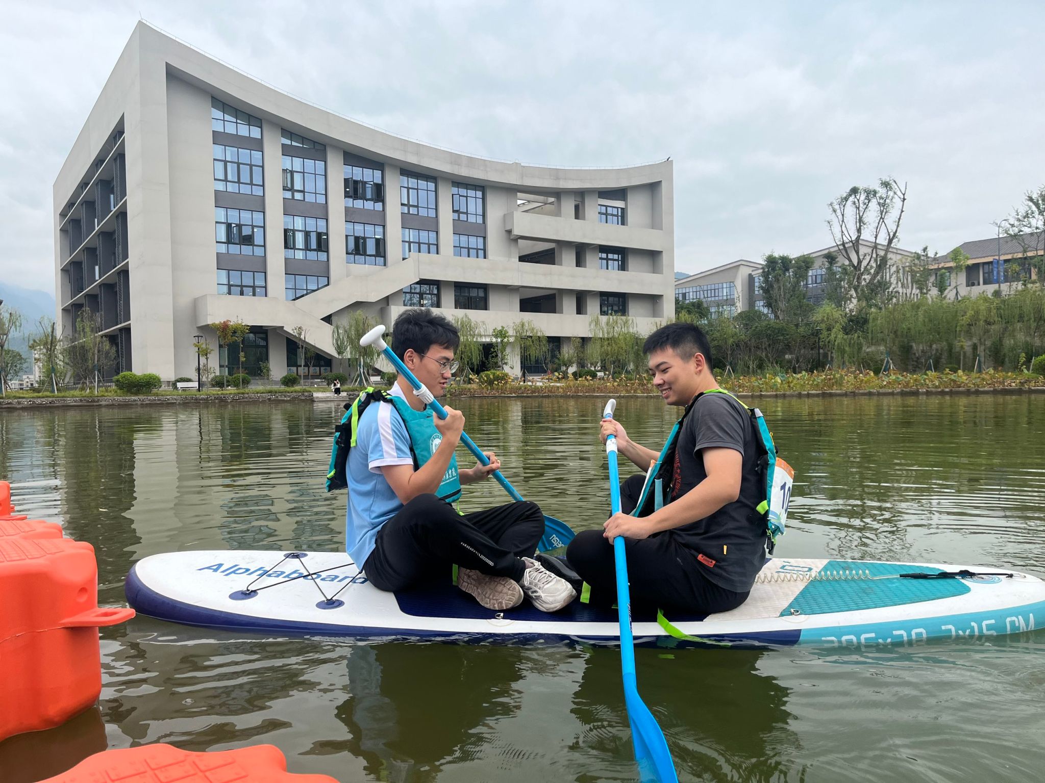 桨板运动作为一项新兴水上运动,以其易于入门、趣味性强、健身等特点,迅速成为年轻人喜爱的社交与运动方式。本次桨板体验活动,正是帮助同学们融入校园生活、拓展社交圈、提升身体素质而精心策划的专项活动。旨在让大家在亲水互动中释放学业的压力,培养团队协作精神,从而更好地适应和拥抱大学环境。此次活动不仅是一次简单的运动尝试,更是一次深刻的集体体验和完满教育浸润。