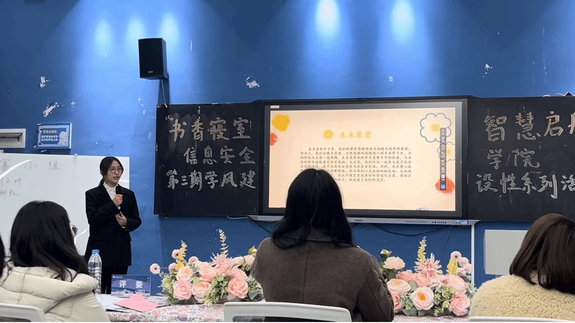 2022级信安潘斯瑶,任学委、组长组20次疑难研讨,3月领学《任正非与华为》,参与率100%;建班级“一对一”帮扶,帮5人攻《操作系统》难点;牵头建“代码晨练”群,让互帮互成常态。