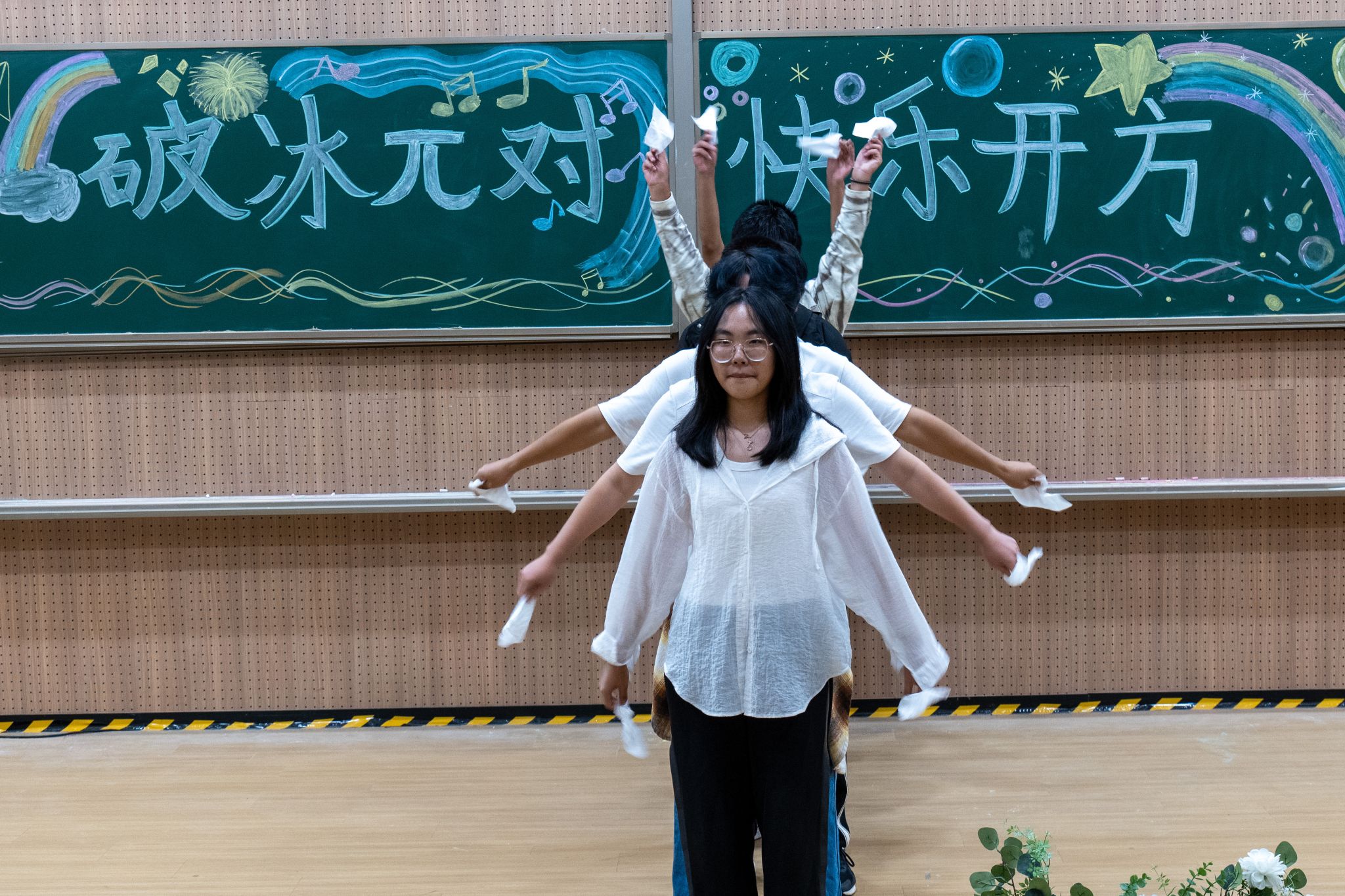 10月17日下午16:30,以“破冰π对,快乐开方”为主题的破冰活动在贤者楼328阶梯教室欢乐开启。各部门通过精心准备的风采展示环节,以部门介绍结合节目表演的形式,充分展现了团队特色与创意活力。体育部的舞蹈《阳光男孩阳光女孩》、宣传部的歌曲《燃烧吧青春》、办公室与学习部联袂献唱的《我们的明天》等节目轮番上演,现场掌声不断。其间穿插的“Emoji猜猜猜”“方言传话”等互动游戏,更将现场气氛推向高潮。