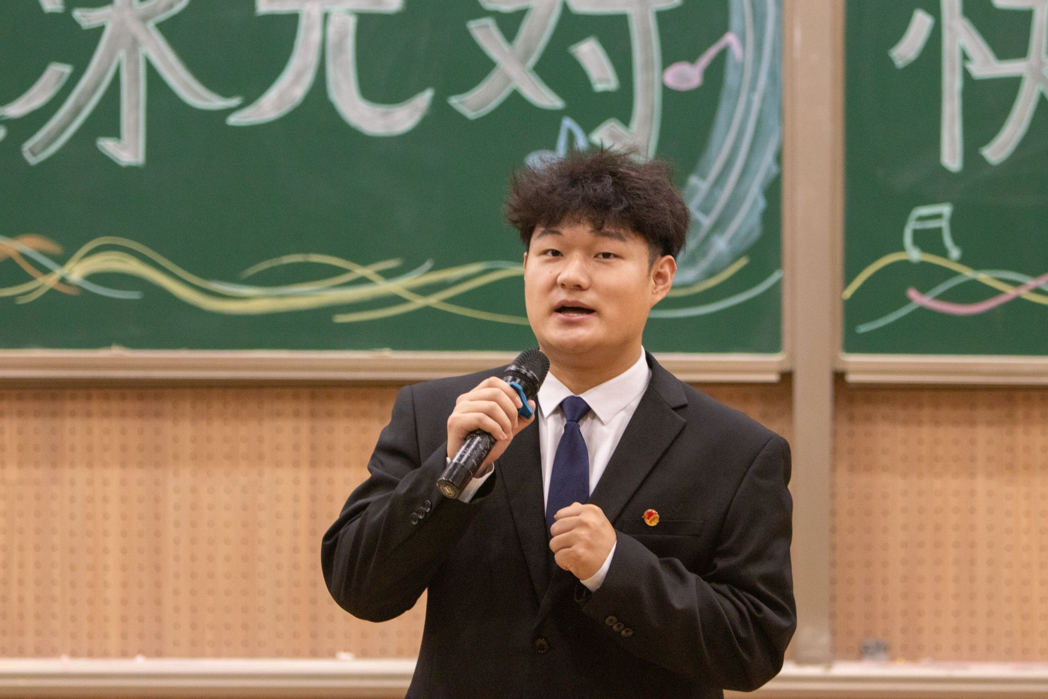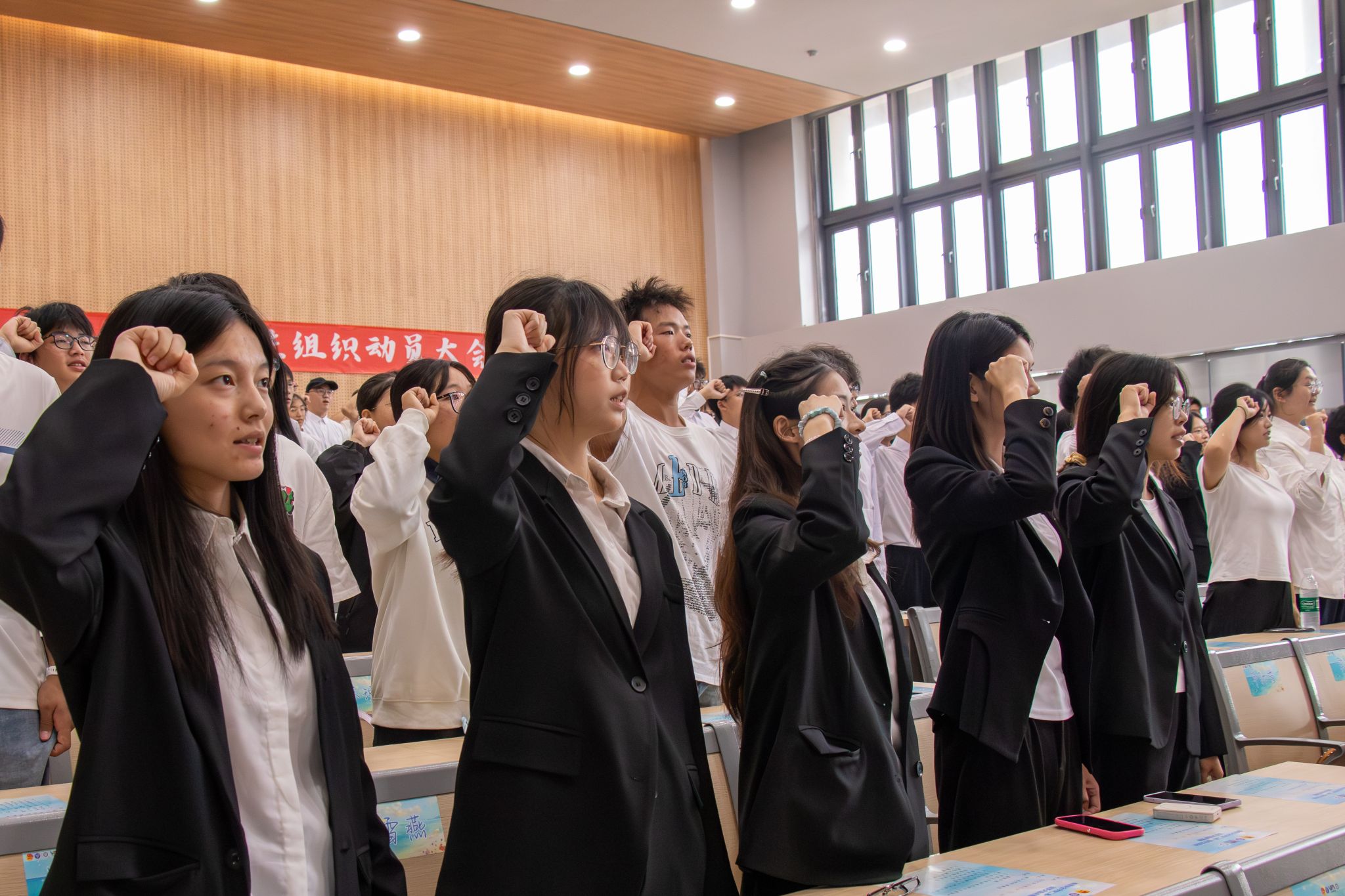 10月15日中午12:40,动员大会在横山书院阶梯教室准时开始。党总支副书记尹金维、党总支专职副书记田海燕、团总支书记温朝一及就业创业办公室主任袁君莅临现场,为主席团及各部门干部代表颁发工作证,全体成员庄严宣誓,承诺恪守职责、服务同学。党总支副书记尹金维在致辞中,以“消消乐”闯关游戏的生动比喻勉励同学们坚守初心、勇于突破,在平凡工作中积累成长,为学院发展贡献青春力量。