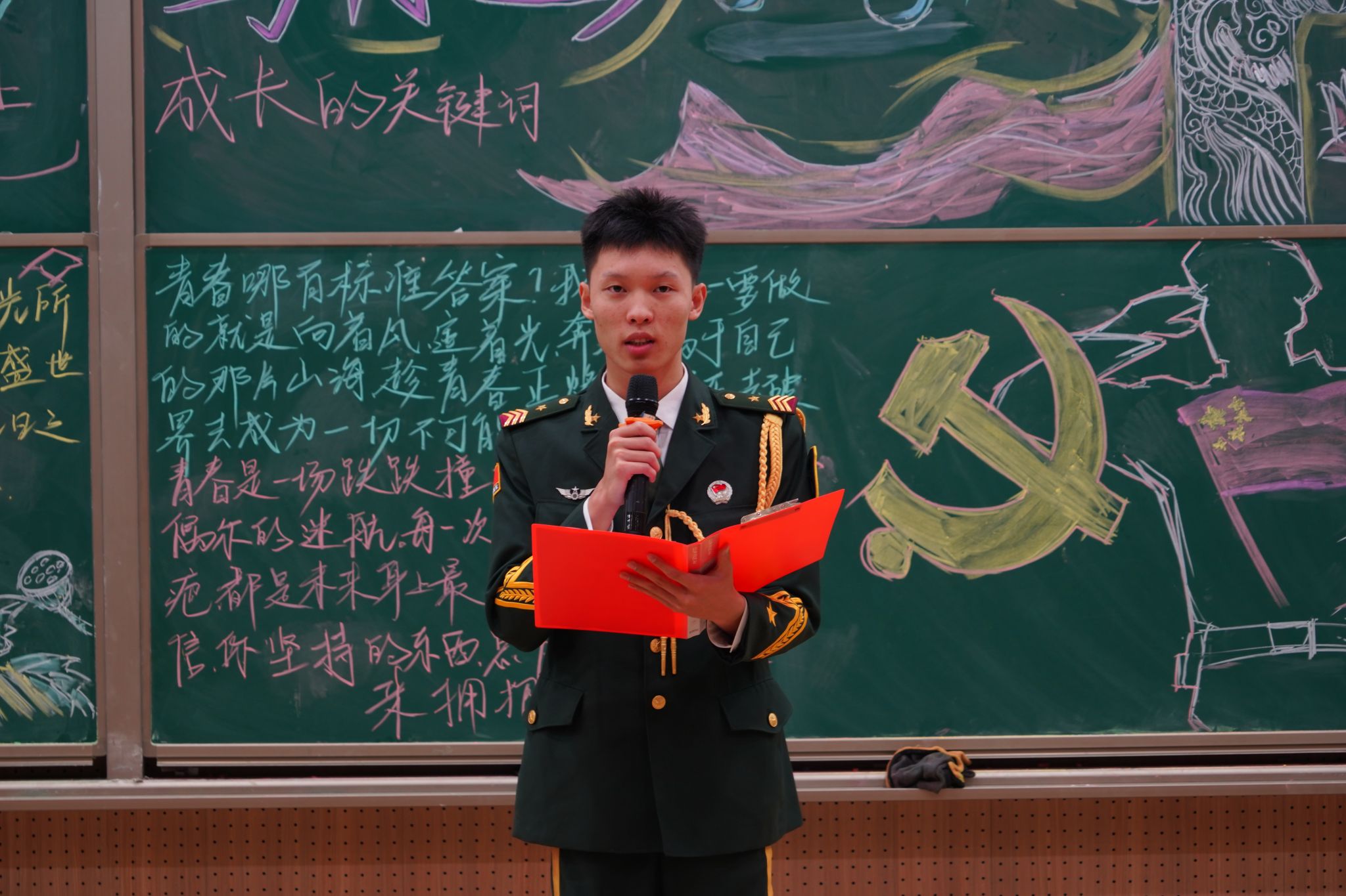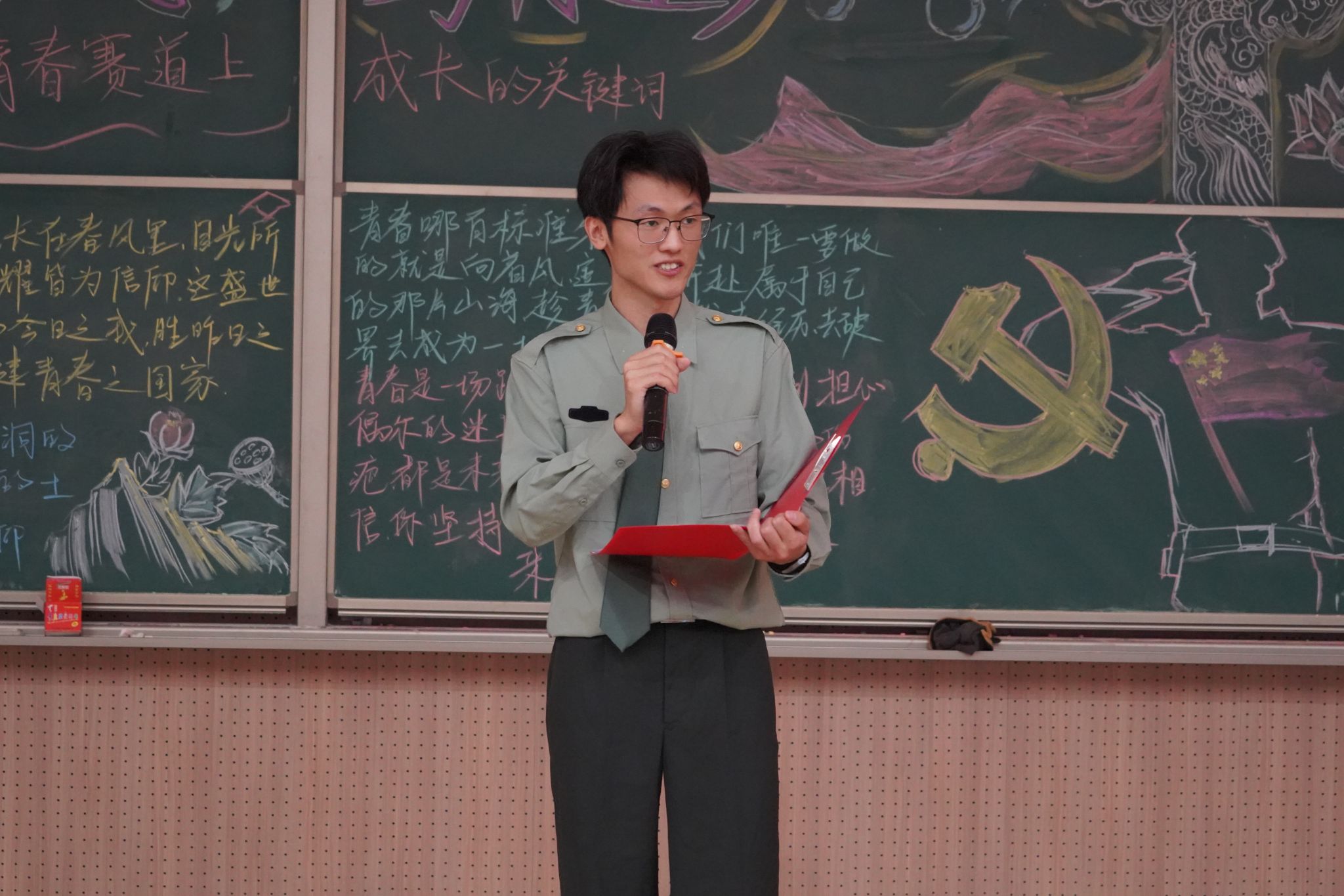 退役复学学长赵子盛分享了从军营到校园的心路历程。他将爱国情怀具体化为“站好每一班岗”和“写好每一行代码”,用朴实有力的话语,为学子们指明了将个人所学与国家需要相结合的报国之路。