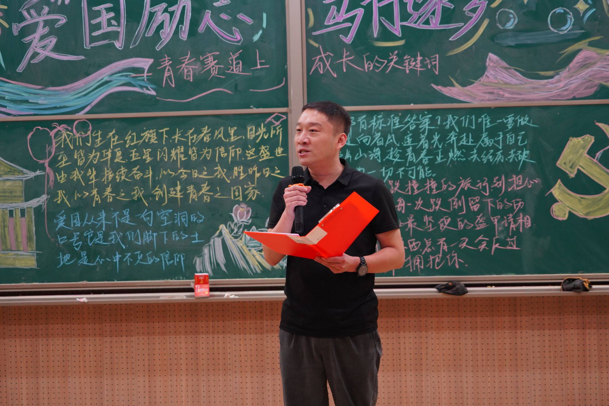 辅导员邹健老师进行主题宣讲,通过鲜活案例阐释“小目标”与“大发展”的辩证关系,引导学生从认真听课到参与竞赛,从锤炼意志到奉献社会,以每一次笃行践行爱国情怀,并强调了坚守原则、行稳致远的重要性。