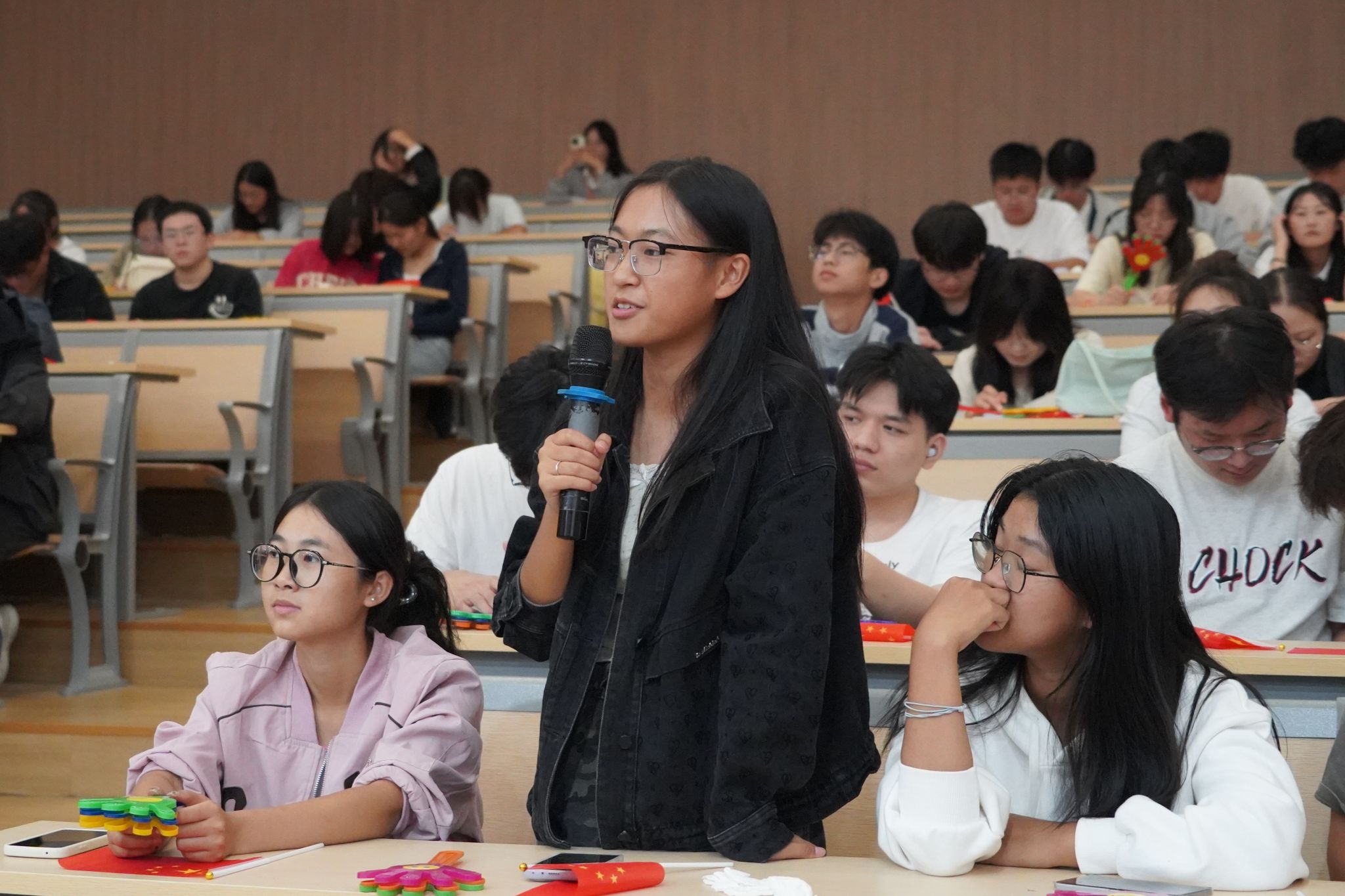 “国家战略知多少”知识竞答环节率先点燃全场热情。大一与大三学生混合组队,围绕“一带一路”“科技自立自强”等关键词展开激烈对决。这场寓教于乐的较量,将宏大的国家战略化为可知可感的青春共识。