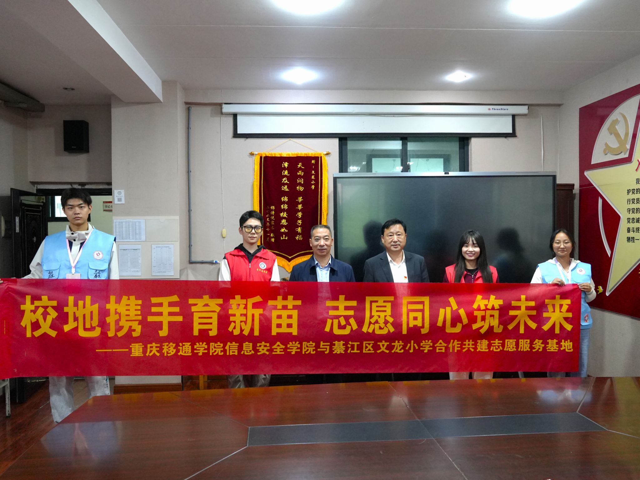 2025年10月21日,重庆移通学院信息安全学院团总支青年志愿者协会赴文龙小学,双方举行志愿服务阵地签约仪式,以校校合作之力,用生命教育志愿服务为小学生生命成长发展注入蓬勃力量。