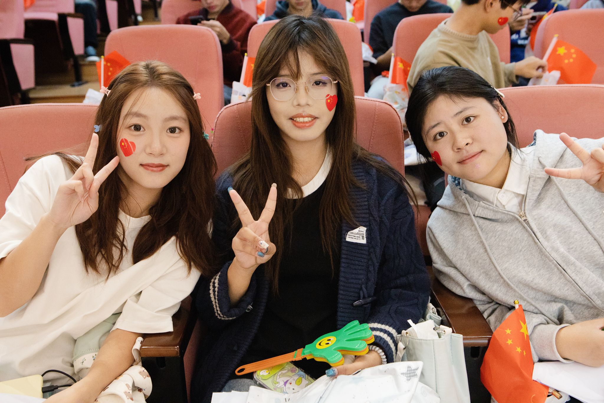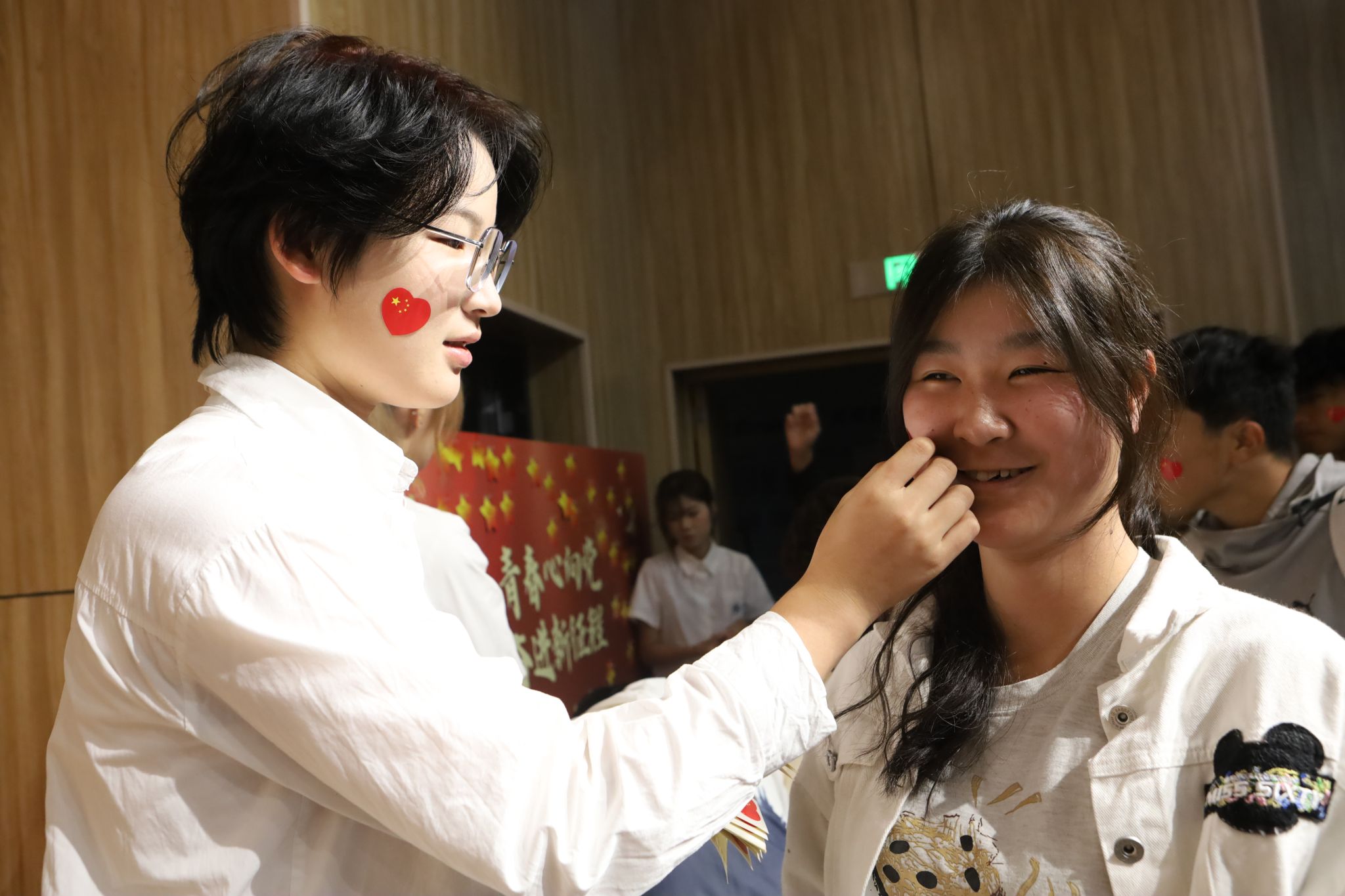 临近尾声,辅导员寄语同学们牢记使命,以家国情怀为奋斗动力。随后,《歌唱祖国》奏响,同学们挥旗合唱,歌声饱含赤诚。最后,笑脸定格,为这场爱国励志活动画上句号。
