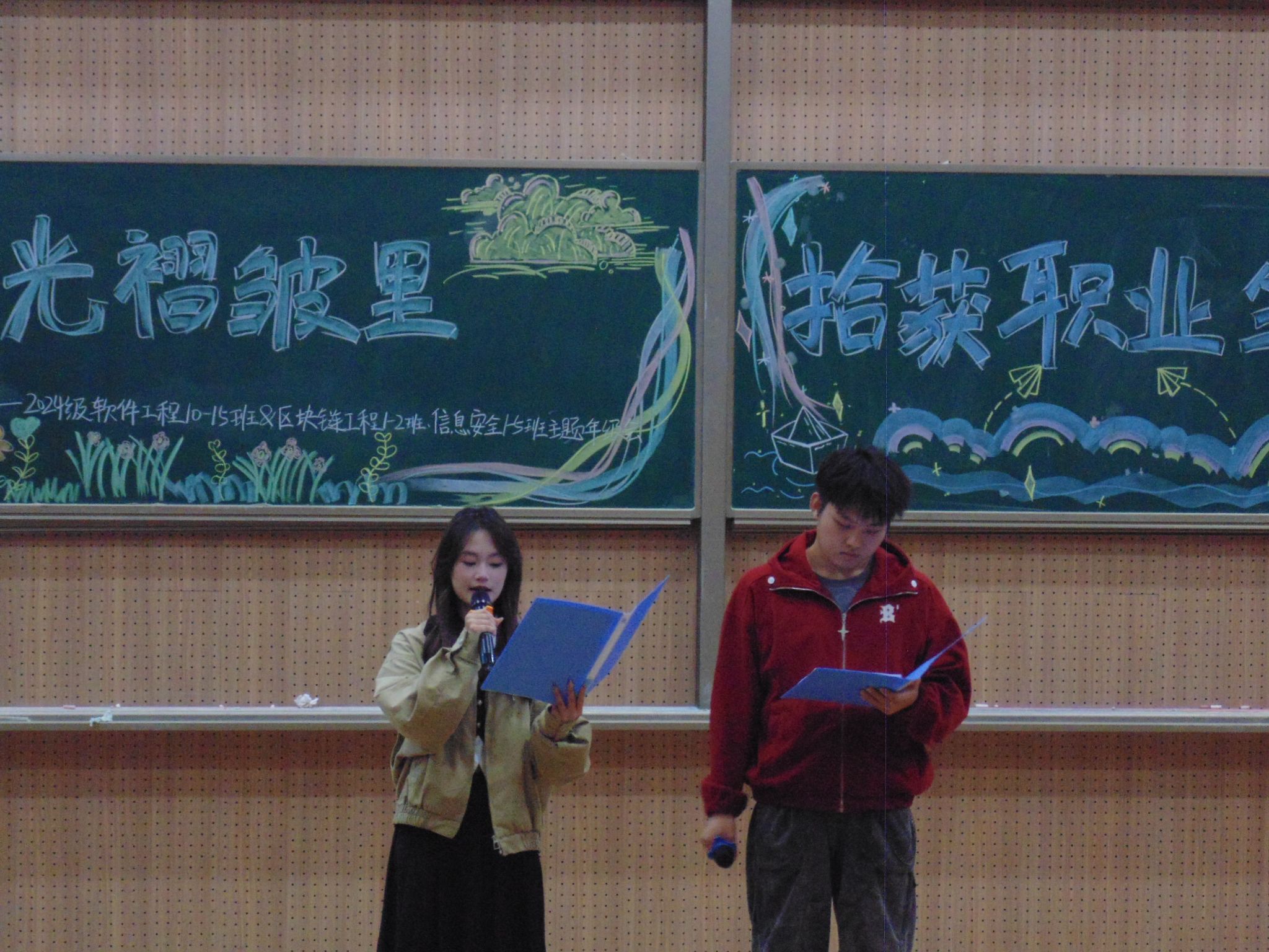 为帮助同学们建立职业代入感、明确发展方向,10月24日下午16:50,2024级软件工程10-15班、区块链工程1-2班及信息安全1-5班于贤者楼328召开“在时光褶皱里拾获职业坐标”主题年级会。