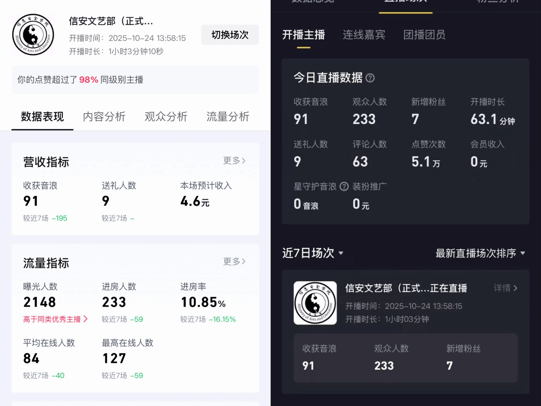 音乐是时光的密钥,总能不经意间开启一扇记忆的闸门。10月24日,信息安全学院文艺部开展了一场以“声浪调频·歌潮心曲共鸣站”为题的直播活动,以旋律为桥搭建情感纽带,用歌声传递青春共鸣,让藏于音符中的记忆与心声在直播间中肆意流淌。