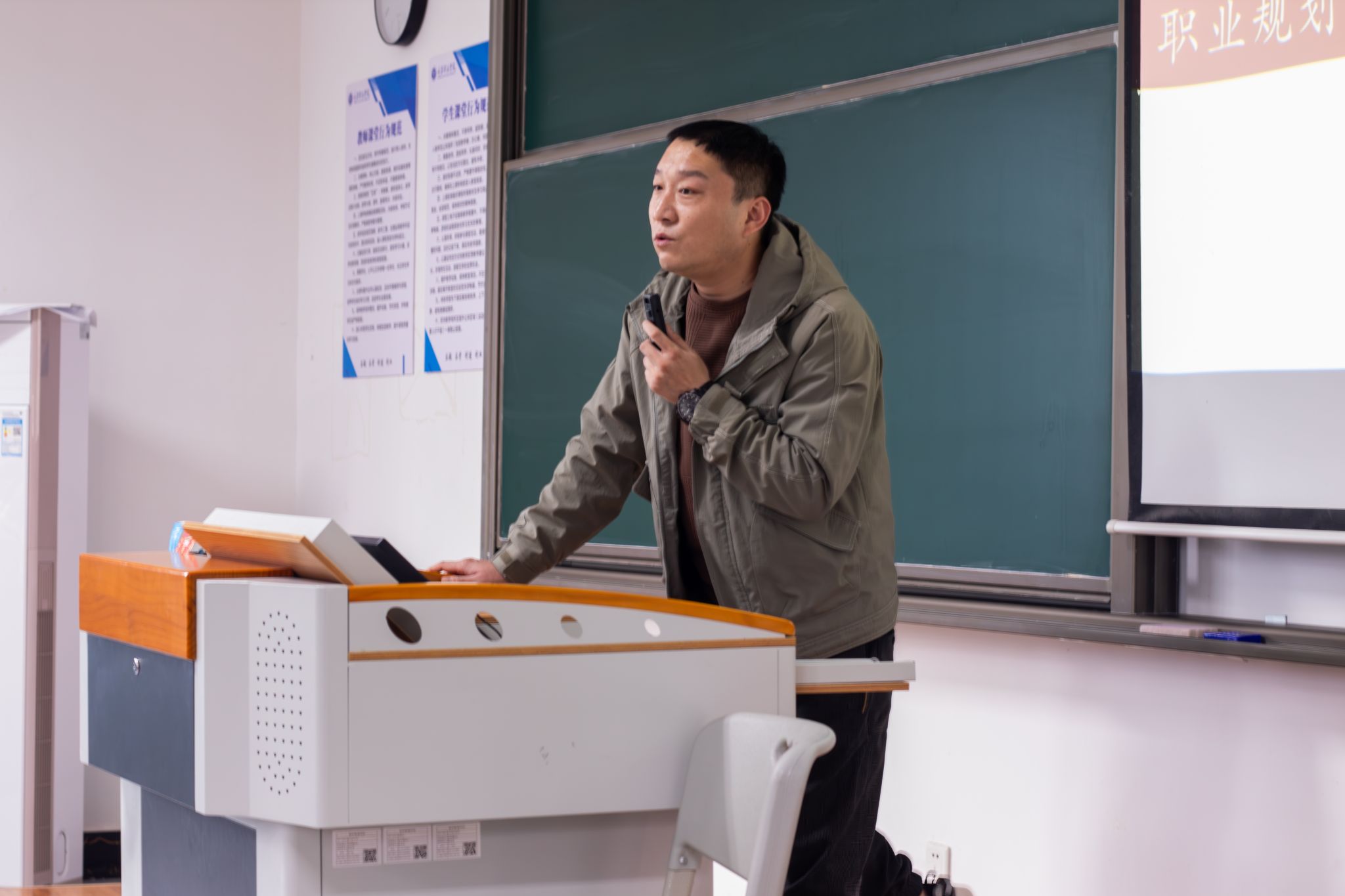 班会伊始,辅导员邹健围绕“学业目标的核心价值”展开分享,结合往届学长学姐的成长案例,强调无目标的学习如同“盲行”,鼓励同学们结合专业特色制定阶段性学业计划,从课程成绩提升、专业技能考证到学术实践参与,逐步夯实成长基础。针对大一新生对自己的职业困惑,班会特别设置职业规划专题环节,明确提出“先就业,后择业”的行动准则,引导学生破除“一步到位”的认知误区,以积累实践经验为首要目标,在职业历练中明晰发展方向。