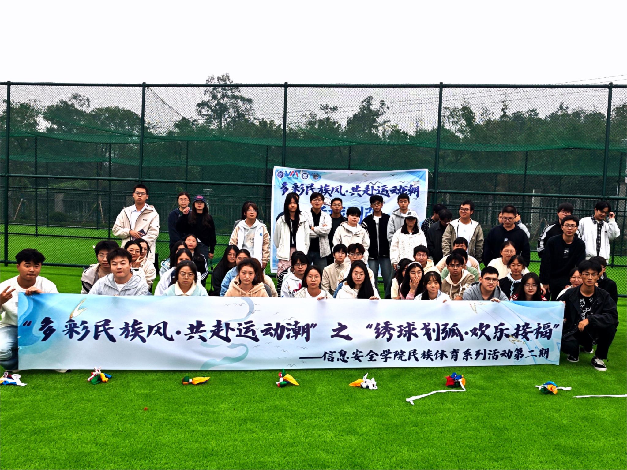 10月29日下午16:00,信息安全学院“多彩民族风·共赴运动潮”民族体育系列活动第二期“绣球划弧·欢乐接福”活动如期开展。活动以壮族抛绣球民俗为依托,融入趣味竞技形式,吸引学院各年级学生参与。