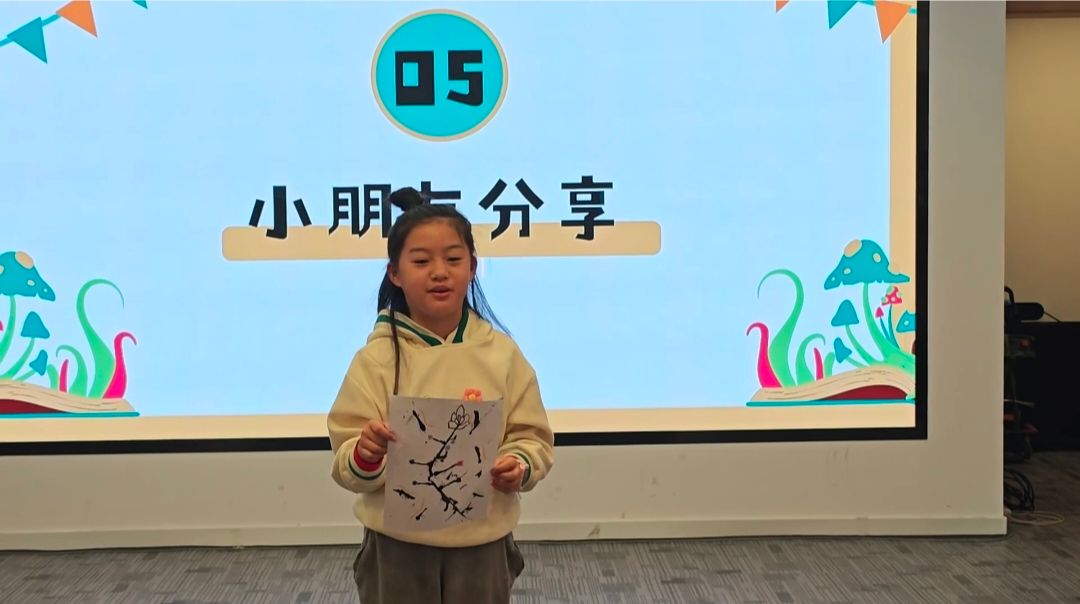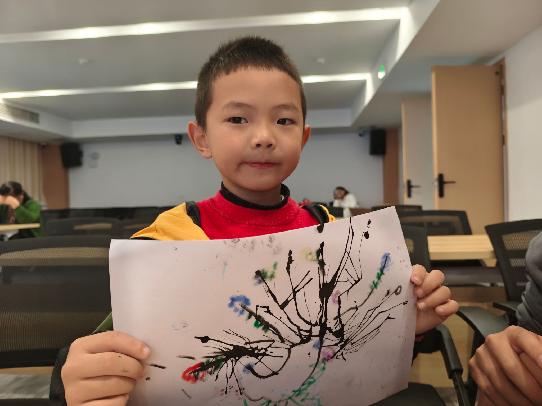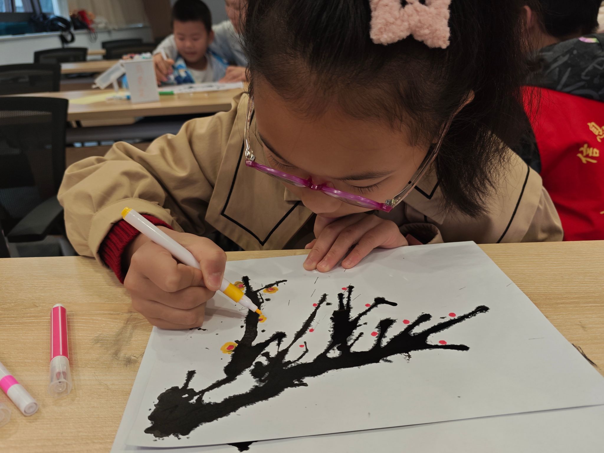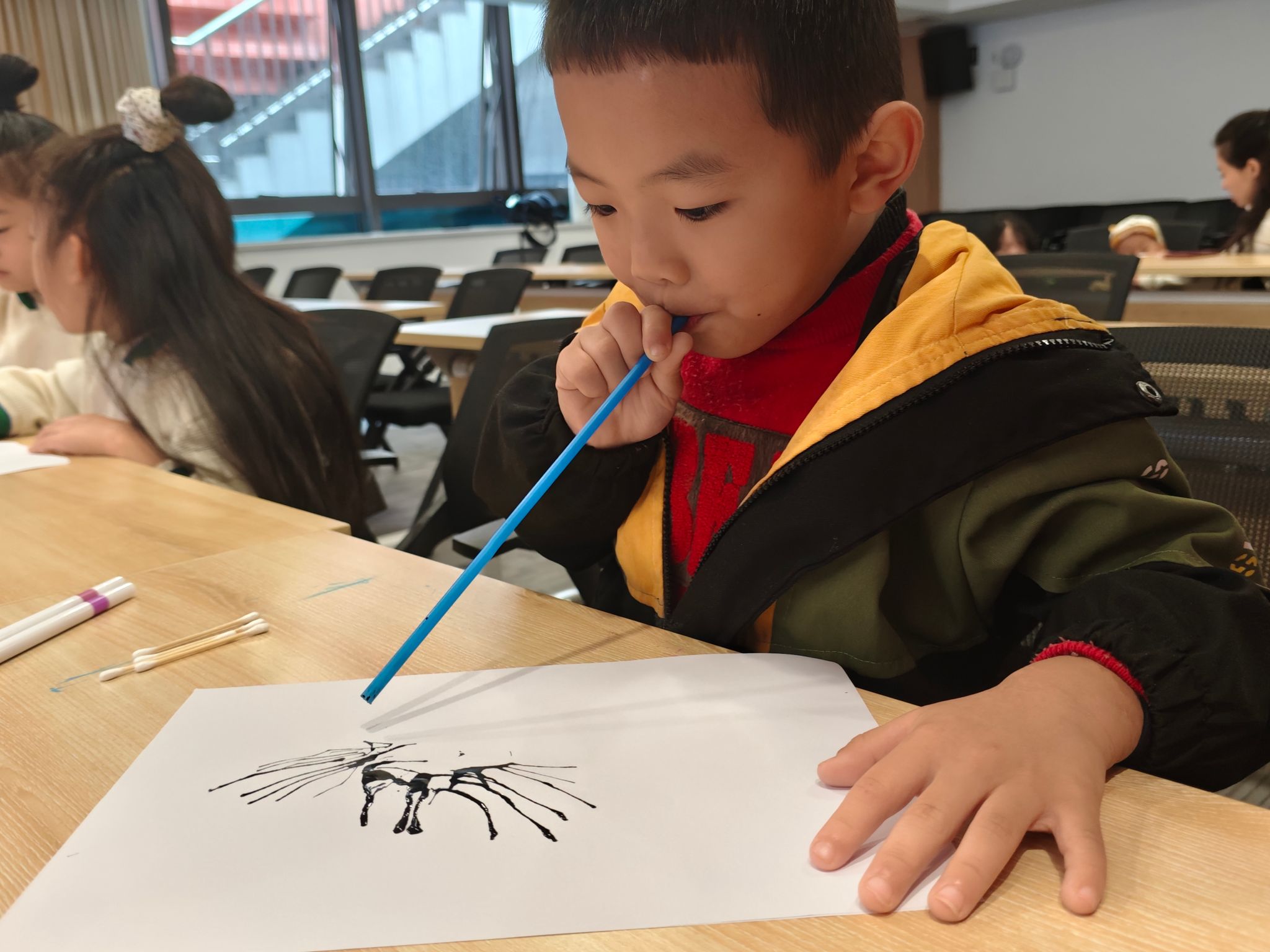 从汉字演变的生动讲述,到分组拼诗的合作朗诵,再到吹墨添画的自由创作,活动的各个环节紧密相扣。孩子们不仅学到了知识,团队意识也在协作中悄然生长,而随墨汁流淌开来的,更是他们无尽的奇思妙想。