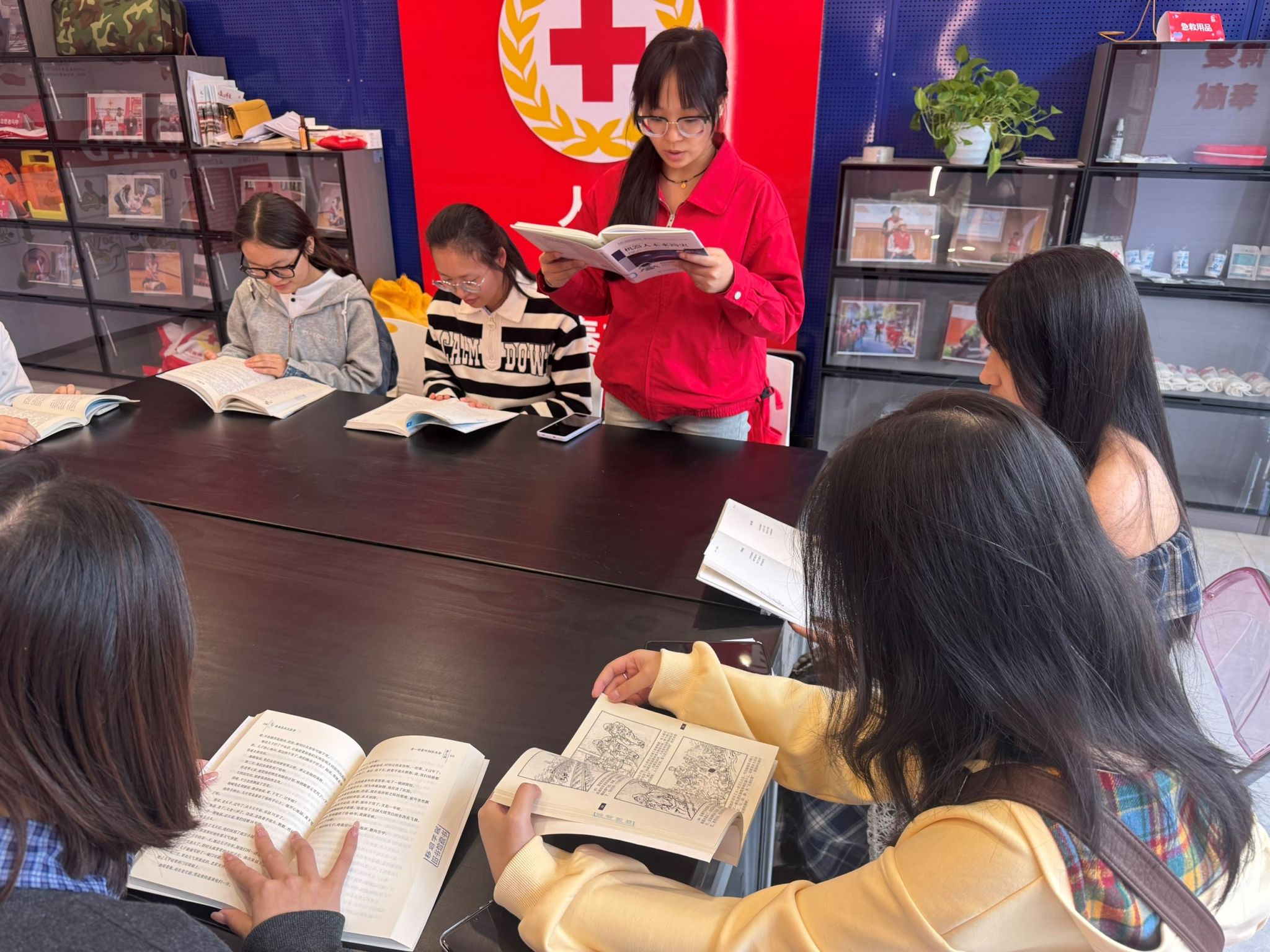 先开启“跨界读书分享会”。刘老师与同学们携带了提前准备好的书籍,涵盖人文、科技、社科等领域:有人分享《人类简史》,畅谈“认知革命”对人类发展的影响,思考当下学习与创新的意义;有人结合《思考,快与慢》,解读书中的思维模型,探讨如何用理性思考应对生活与学习中的选择,交流如何规划大学时光。交流环节中,大家围绕“书中观点对生活的启发”“不同视角下的书籍解读”展开讨论,刘老师结合自身经验耐心解答,现场书香氤氲,思维碰撞不断。