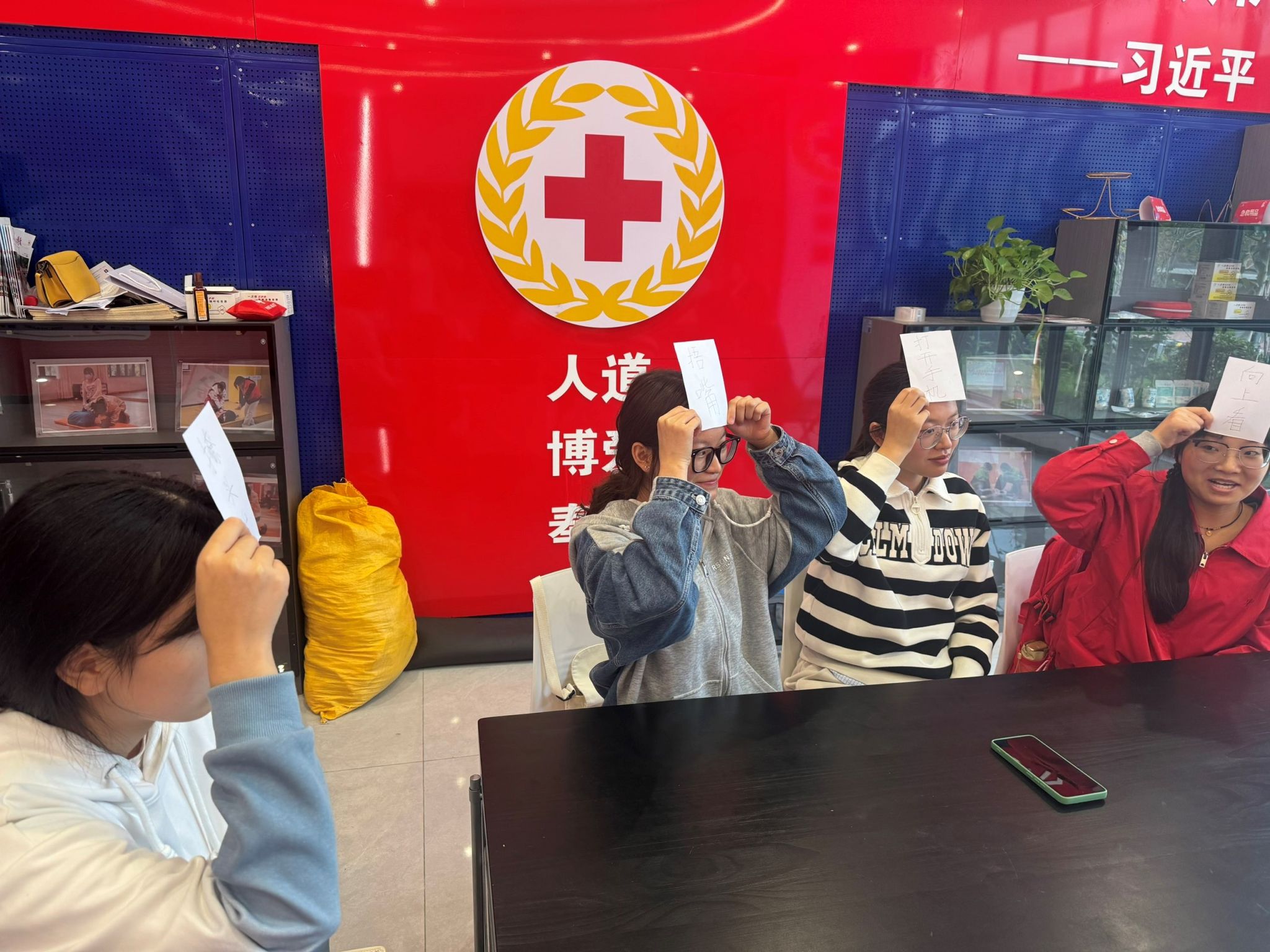 随后,又在功能室内开启游戏“害你在心口难开”率先点燃氛围。师生们头顶写有“说‘游戏’”“做手势”“笑出声”等禁忌词的卡片,在日常对话与互动中互相“试探”。有的同学刚想询问“这个规则怎么玩”,就触发“说‘规则’”的禁忌;也有同学试图引导对方“模仿动作”,反被识破套路,现场笑声此起彼伏,原本的陌生感在这场“斗智斗勇”中快速消散。