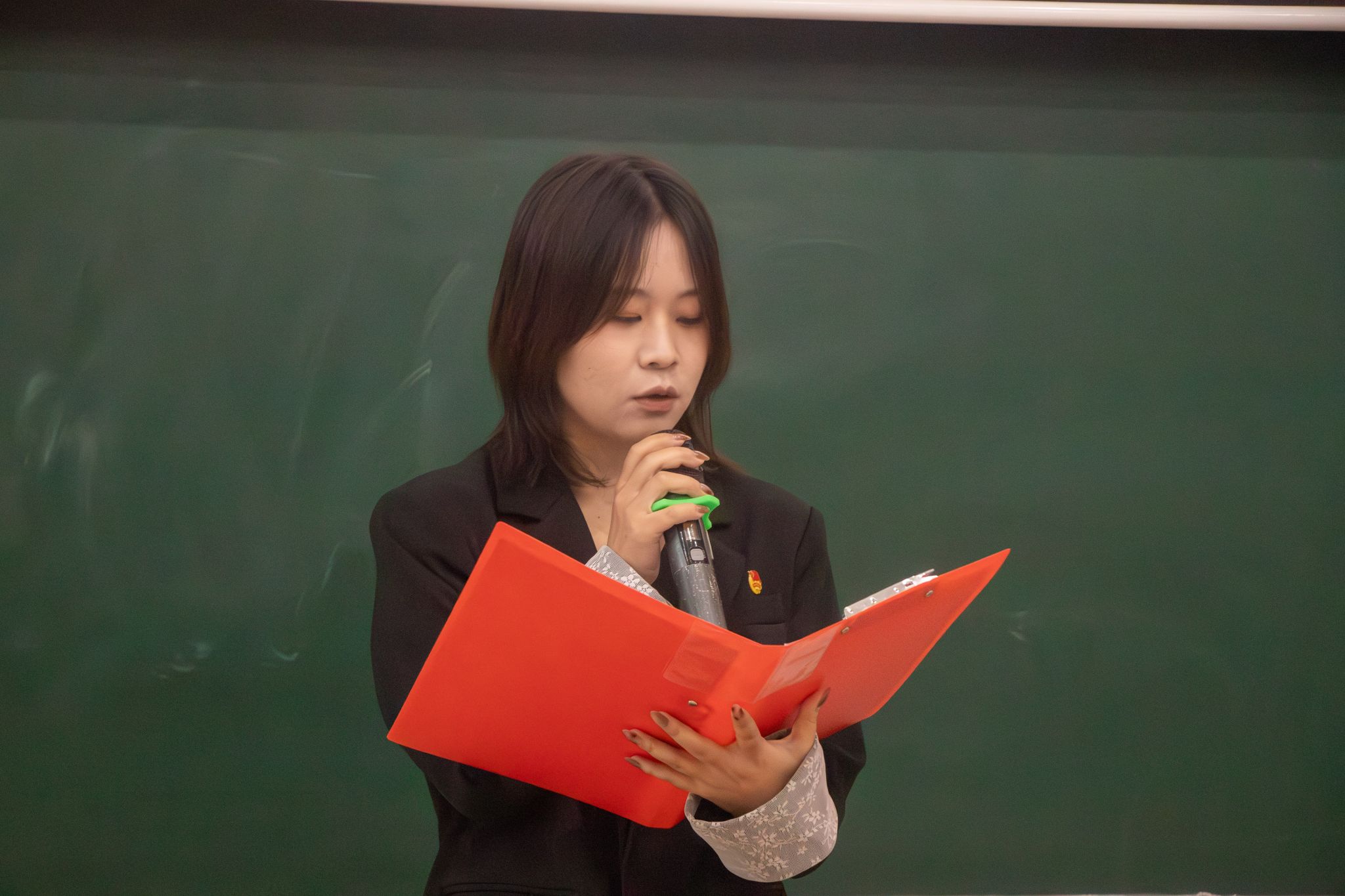 随后,主持人宣读班主任名单,团总支书记温朝一为其颁发聘书。
