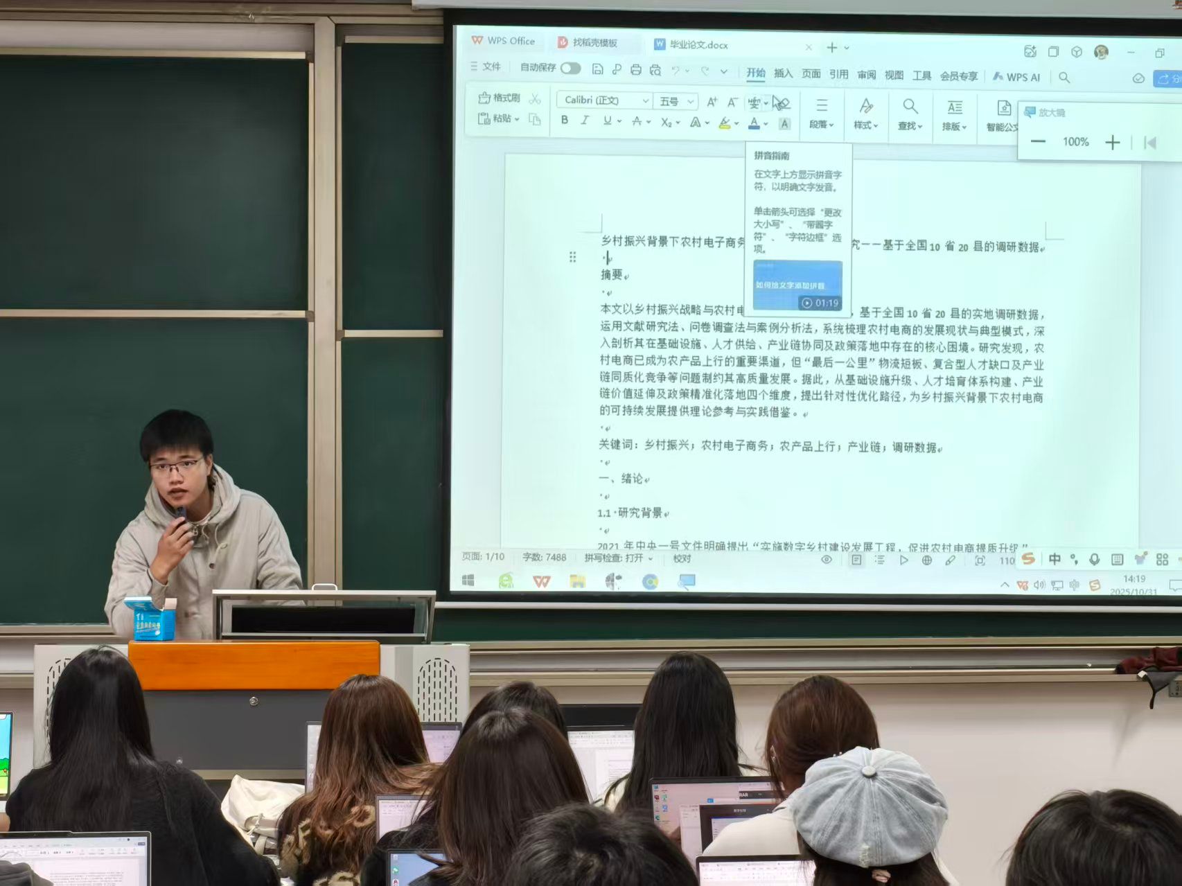 培训伊始,班导师张秦、胡容详细介绍了本次培训的目的与流程,强调了办公技能在班团工作中的重要性,鼓励各位班委认真学习、积极实操。随后,班导师结合范文演示论文与新闻稿的格式规范,详细讲解word文档中的各种基础操作以及技巧的运用。