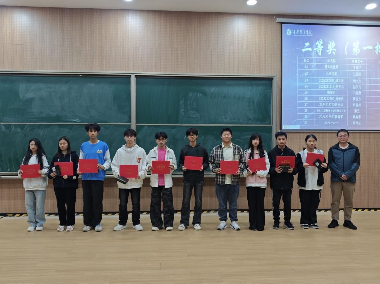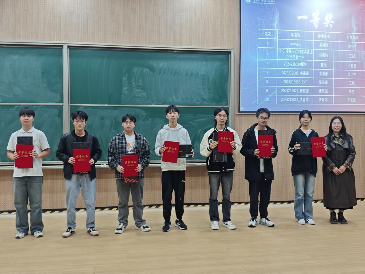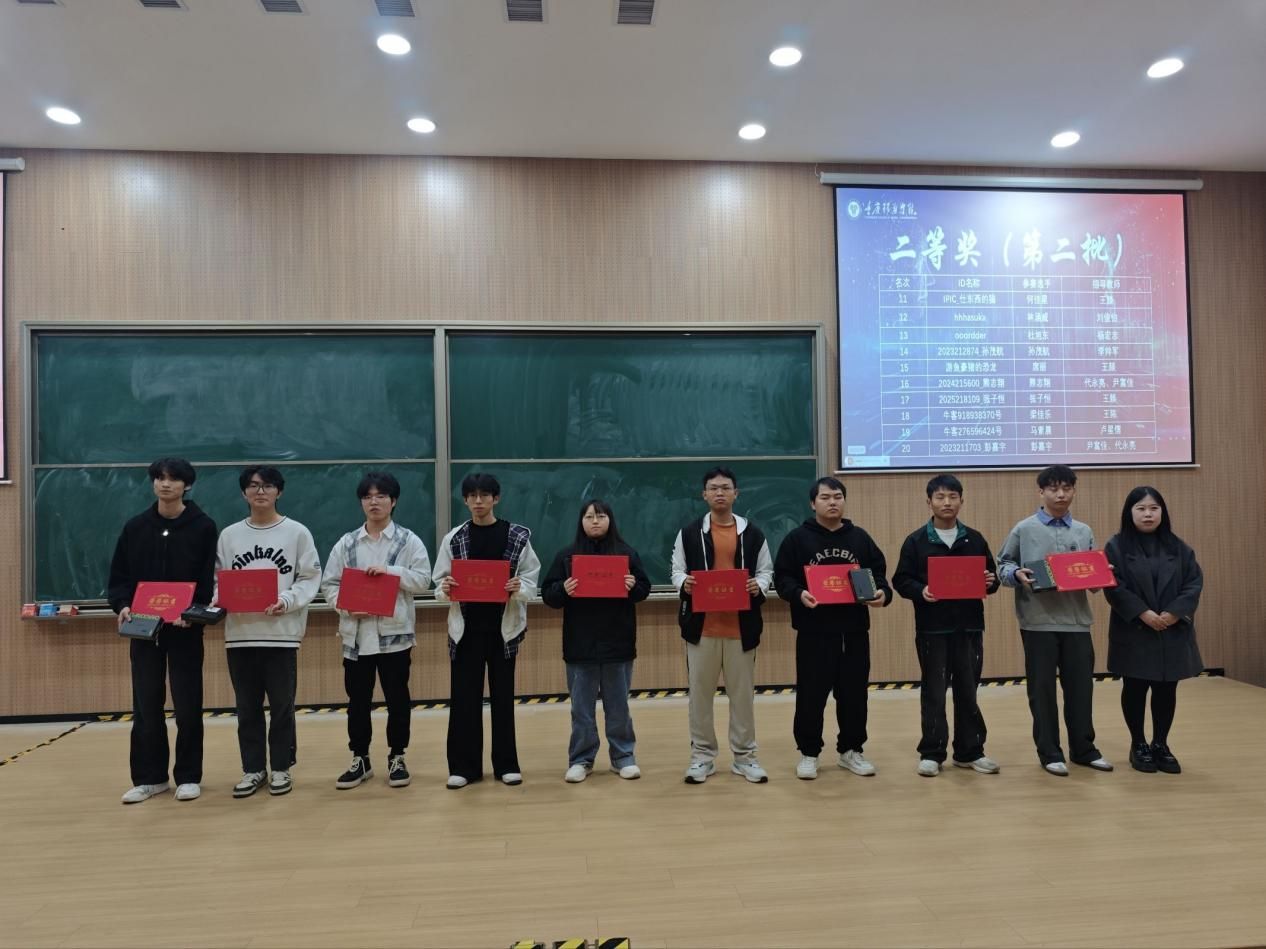 在热烈的掌声中,获奖学生们逐一走上领奖台。每一位同学都凭借过硬的编程实力、清晰的逻辑思维和不服输的拼搏精神,在赛场上全力以赴、各展所长,为我们呈现了一场精彩绝伦的脑力角逐!