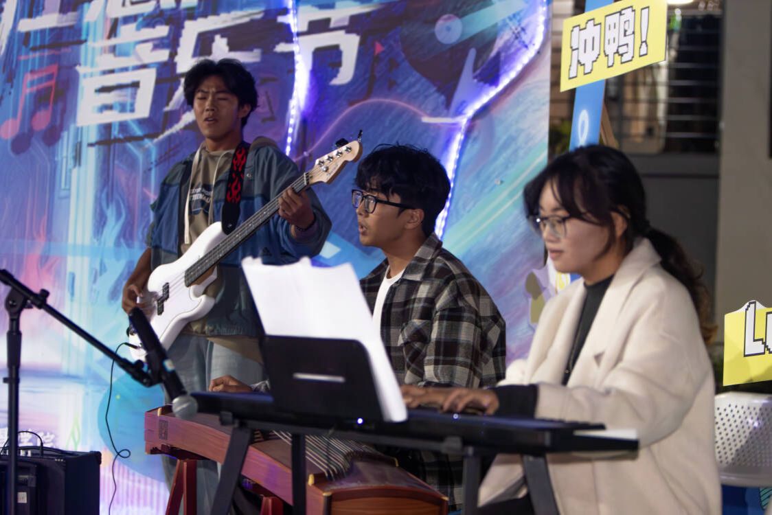 这不仅是一场多元风格的音乐聚会,更是四大院系携手打造校园文化、探索无限可能的一次生动实践!由信息安全学院的同学们带来的双人舞蹈串烧和乐队演唱《海阔天空》更是为整个音乐会增添了一抹亮色。