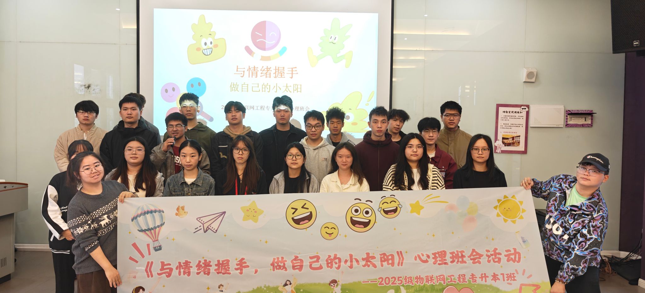 为帮助学生破解情绪困惑,搭建安全温暖的交流平台,11月5日16:20 - 17:20,信息安全学院2025级物联网工程专升本1班在观云书院冬至多媒体教室成功举办《与情绪握手,做自己的小太阳》主题心理班会。班级全体成员齐聚一堂,在趣味互动与深度交流中学习情绪管理,收获心灵成长。