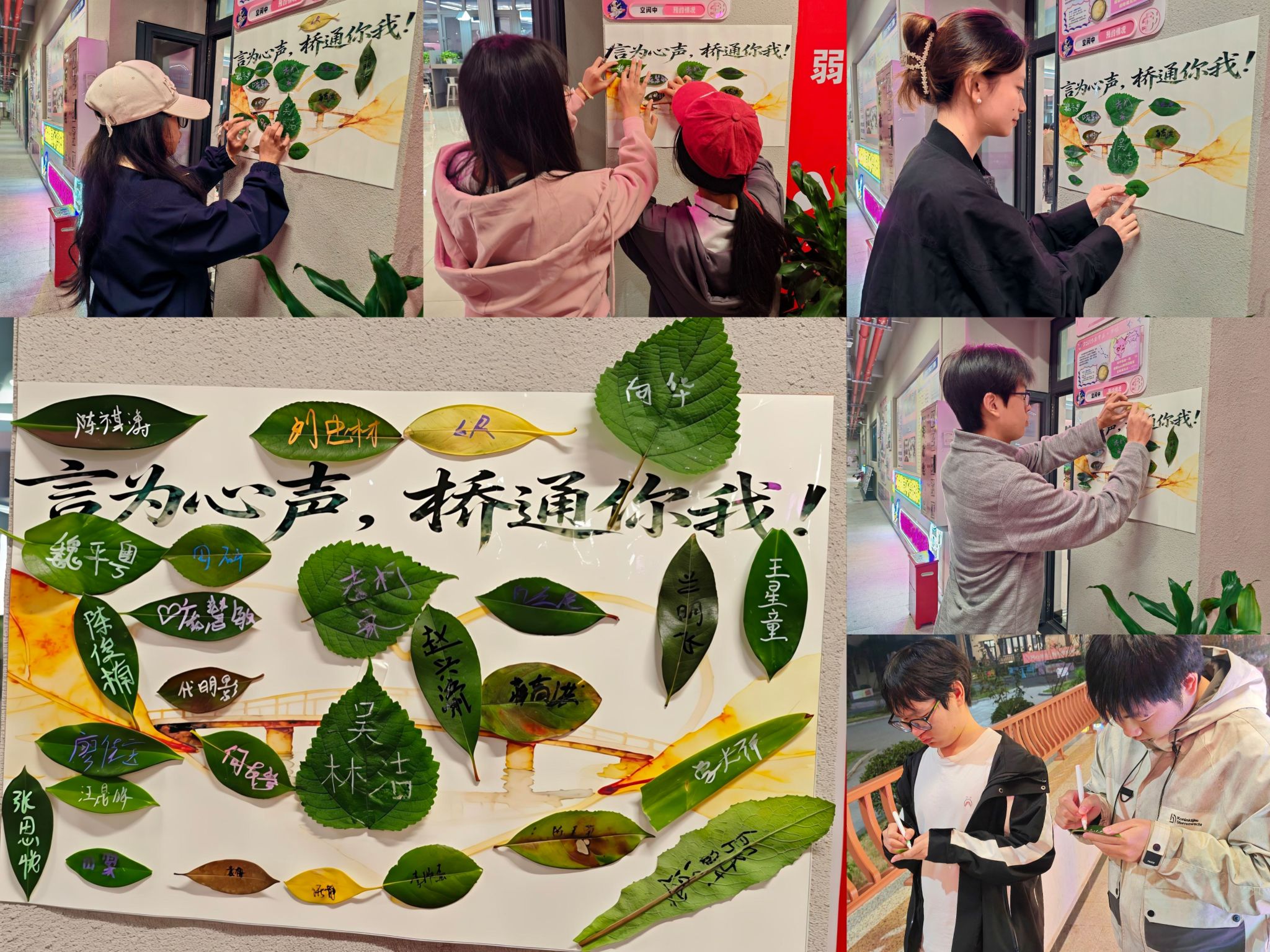 活动伊始,学生们在落叶上签上自己的姓名,并贴于“言为心声,桥通你我”主题海报上,30份签名汇聚成承载集体期望的“心桥”。这种仪式感设计,强化了学生的归属感,为后续活动奠定了情感基础。