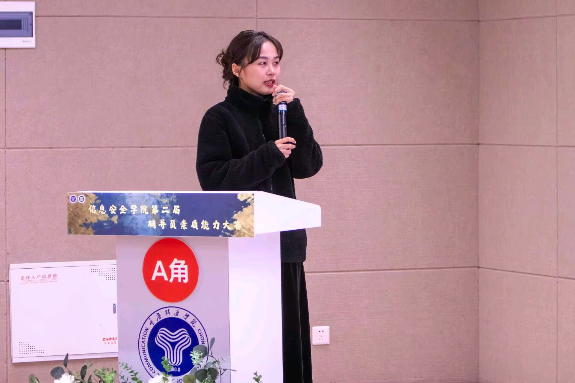 为锤炼辅导员专业能力,信息安全学院于2025年11月举办第二届辅导员素质能力大赛。本次大赛以“以赛促学、以赛促建”为核心,特邀宿管中心张棚老师、学生科程荧老师、心理健康中心杨紫豪老师、信息安全学院党总支副书记尹金维老师、信息安全学院党总支专职副书记田海燕老师担任评委,助力辅导员队伍专业化发展。
