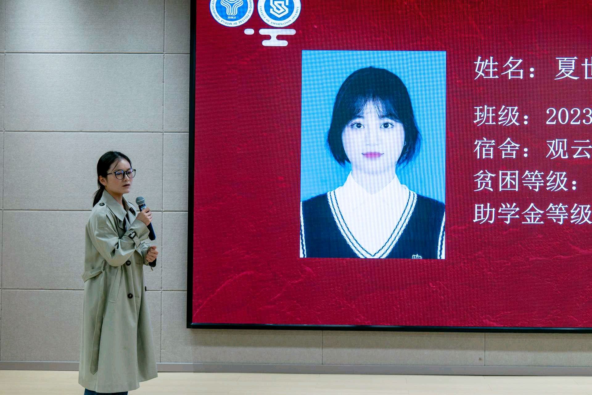学情熟知环节,大屏幕上学生照片逐一呈现,辅导员精准报出每位学生的姓名、班级、宿舍及贫困生等关键信息。见照片而知全貌,既彰显了辅导员“以生为本”的扎实作风与育人温度,更生动诠释了其日常工作中的点滴积累与责任担当。