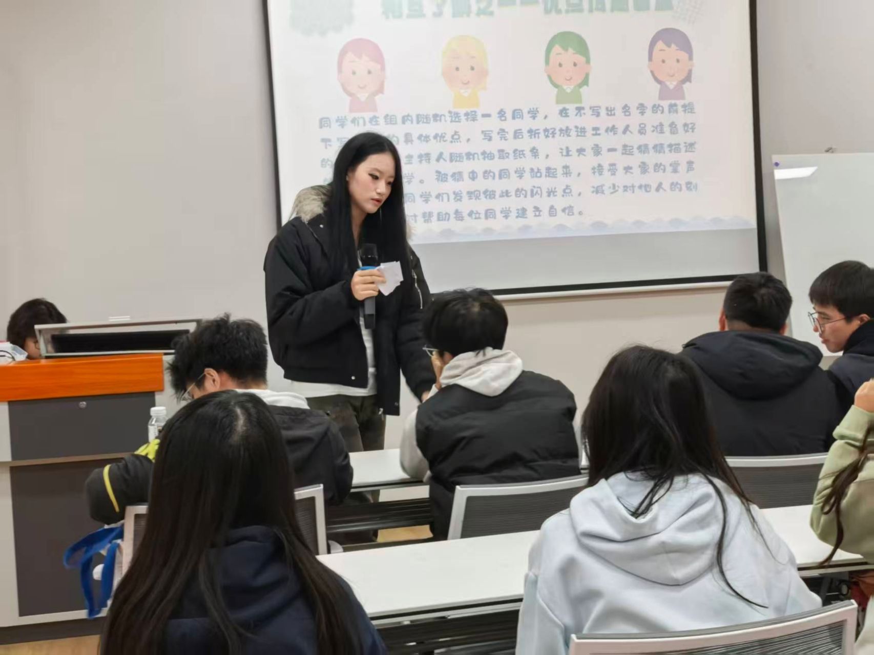 整场活动氛围热烈,同学们积极参与、充分互动。会后,朱灿芸同学说:“这次班会超有意义!‘优点盲盒’让我发现同学们的闪光点,‘信任倒’拉近距离,还学到沟通技巧,真切感受到班级温暖,往后会更用心维护身边的人际关系。”