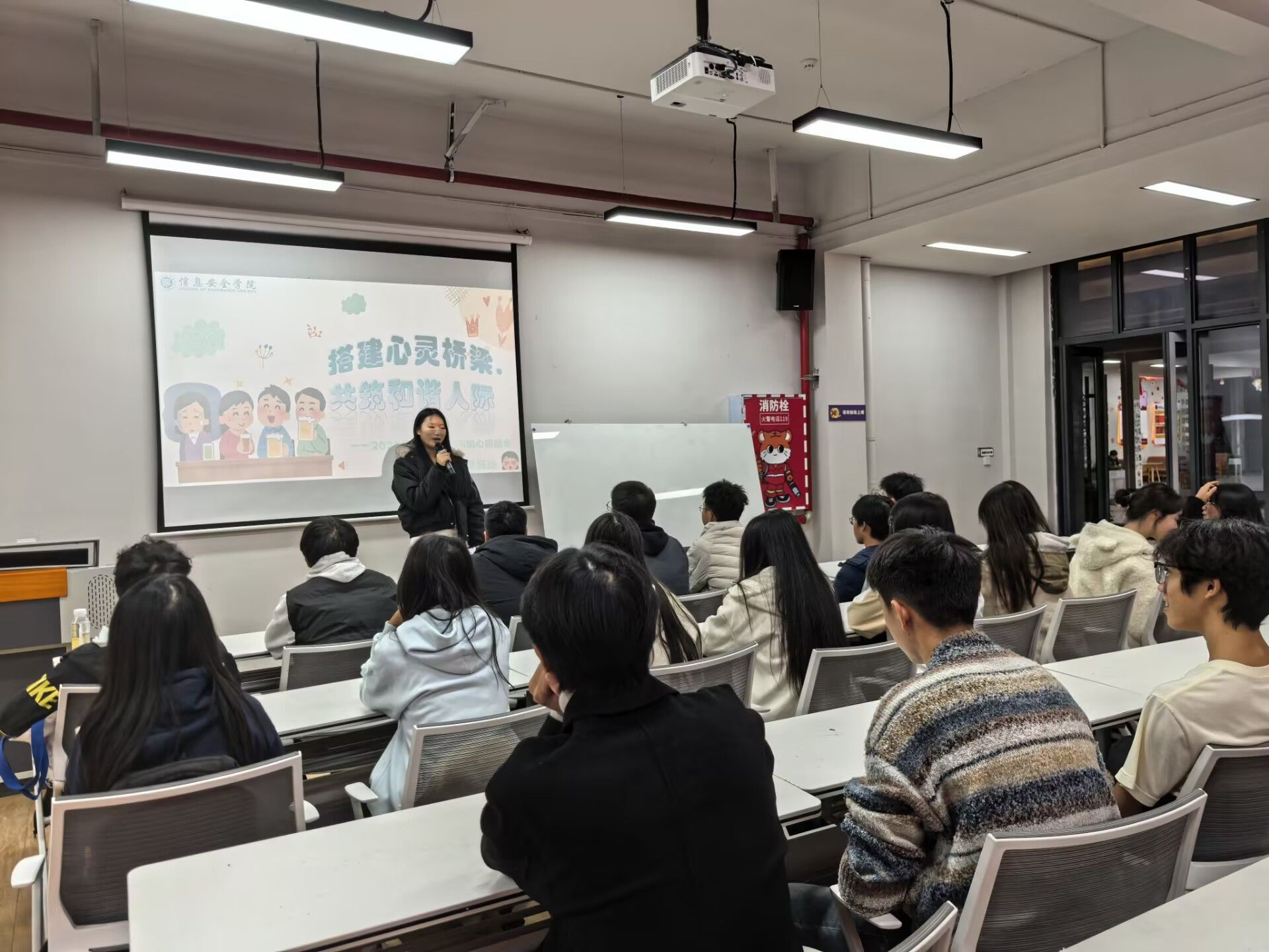 为响应学校号召,进一步帮助同学们构建健康人际关系,11月9日,2025级物联网工程4班在玉棠书院扎推朋辈空间举办了以“搭建心灵桥梁,共筑和谐人际”为主题的心理健康班会。