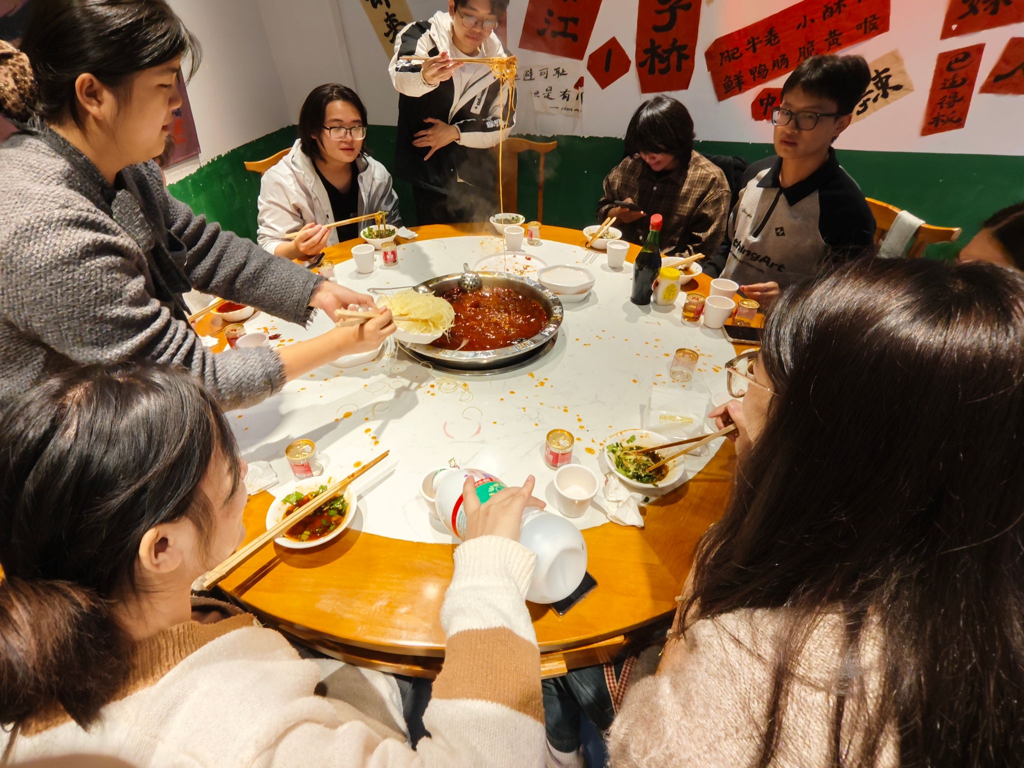 10月31日中午,软件工程2-3班12名同学与异科生指导老师闫春娟老师相聚登瀛憨妹仔火锅店,感念师生情,共话考研、考公、职业规划等成长话题,氛围温馨欢快。