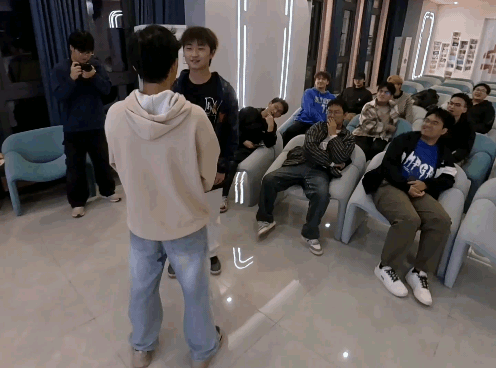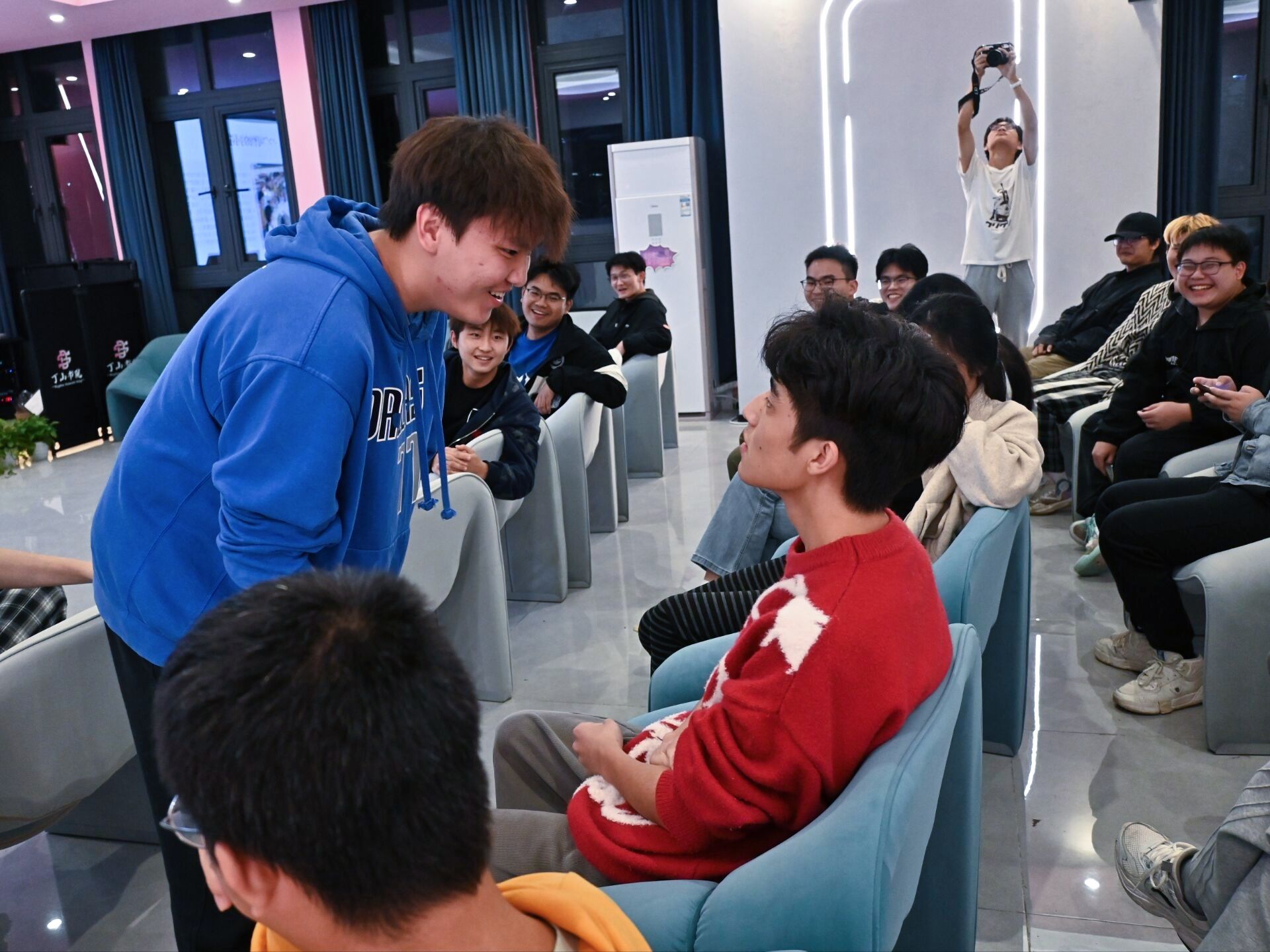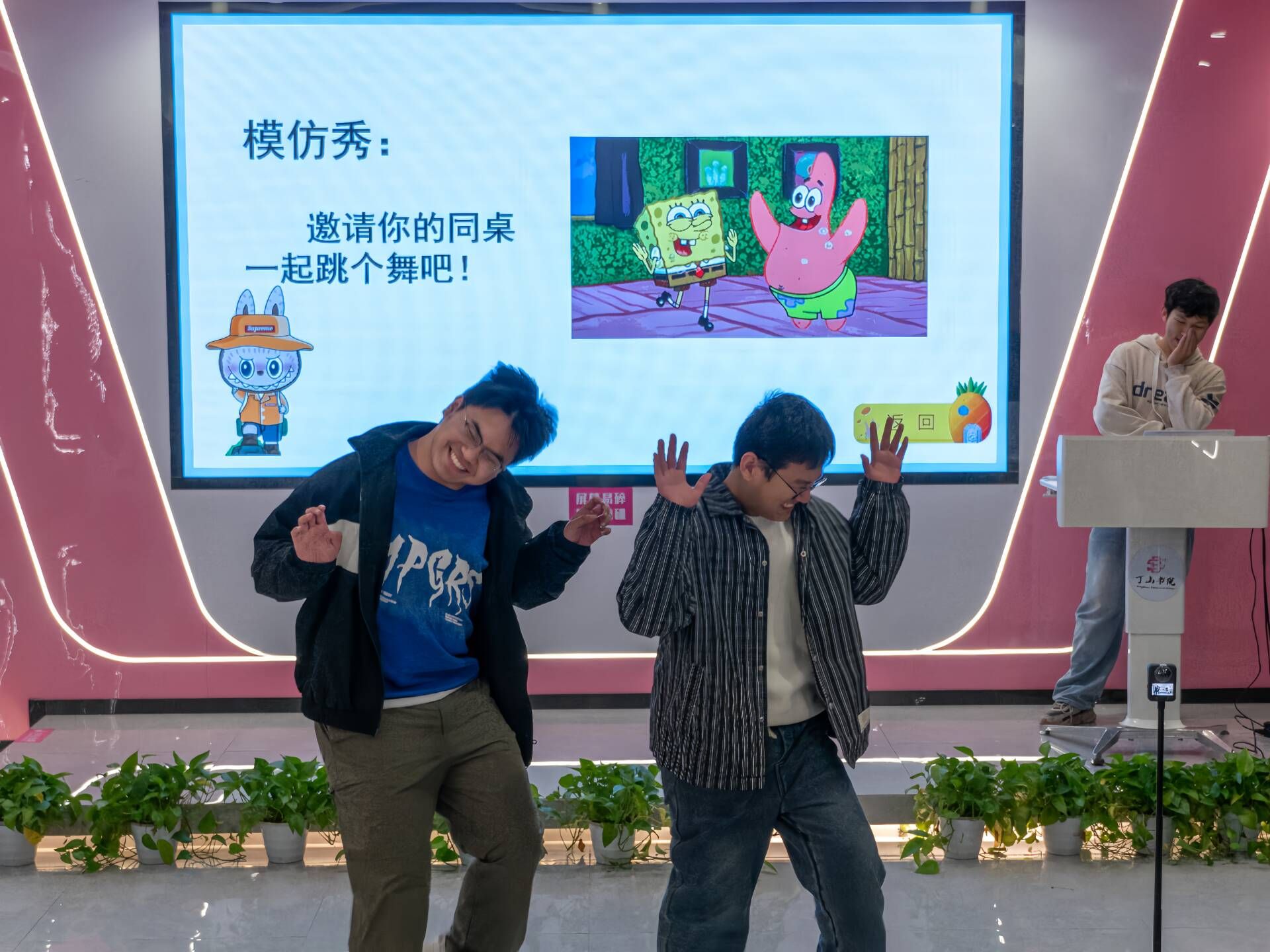 “哦!可怜的小猫”环节将活动推向高潮。黄林坚同学扮演的“小猫”,逗笑杨洪源同学,俏皮动作引得现场笑声不断,拉近了同学间的距离。