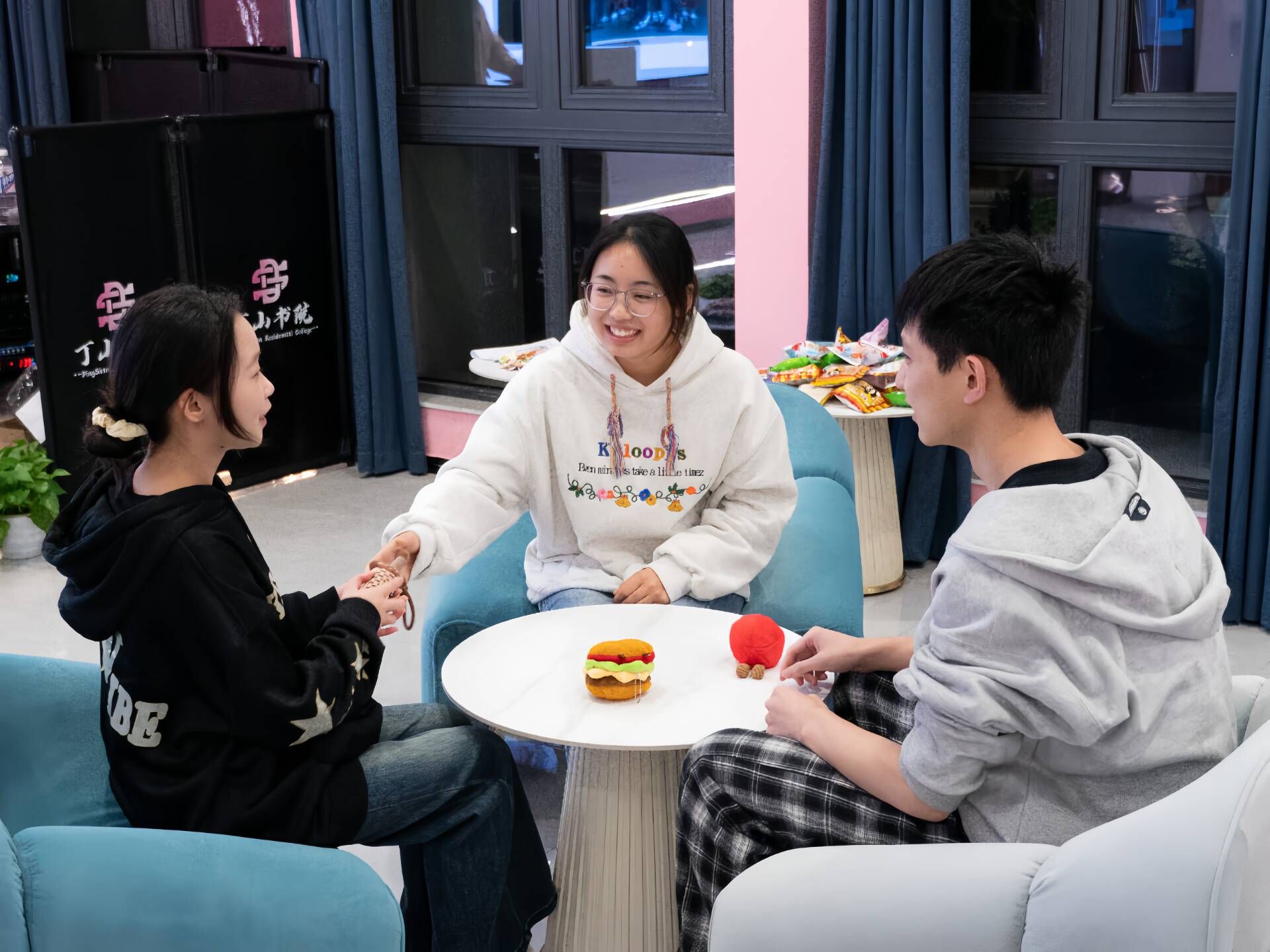 在“勾践剑”游戏中,同学们围坐成圈。正当众人观望之际,李萍、田秀如和徐灵浩三位同学自告奋勇,率先上场组成了第一支挑战队伍,展现出勇敢尝试的精神。