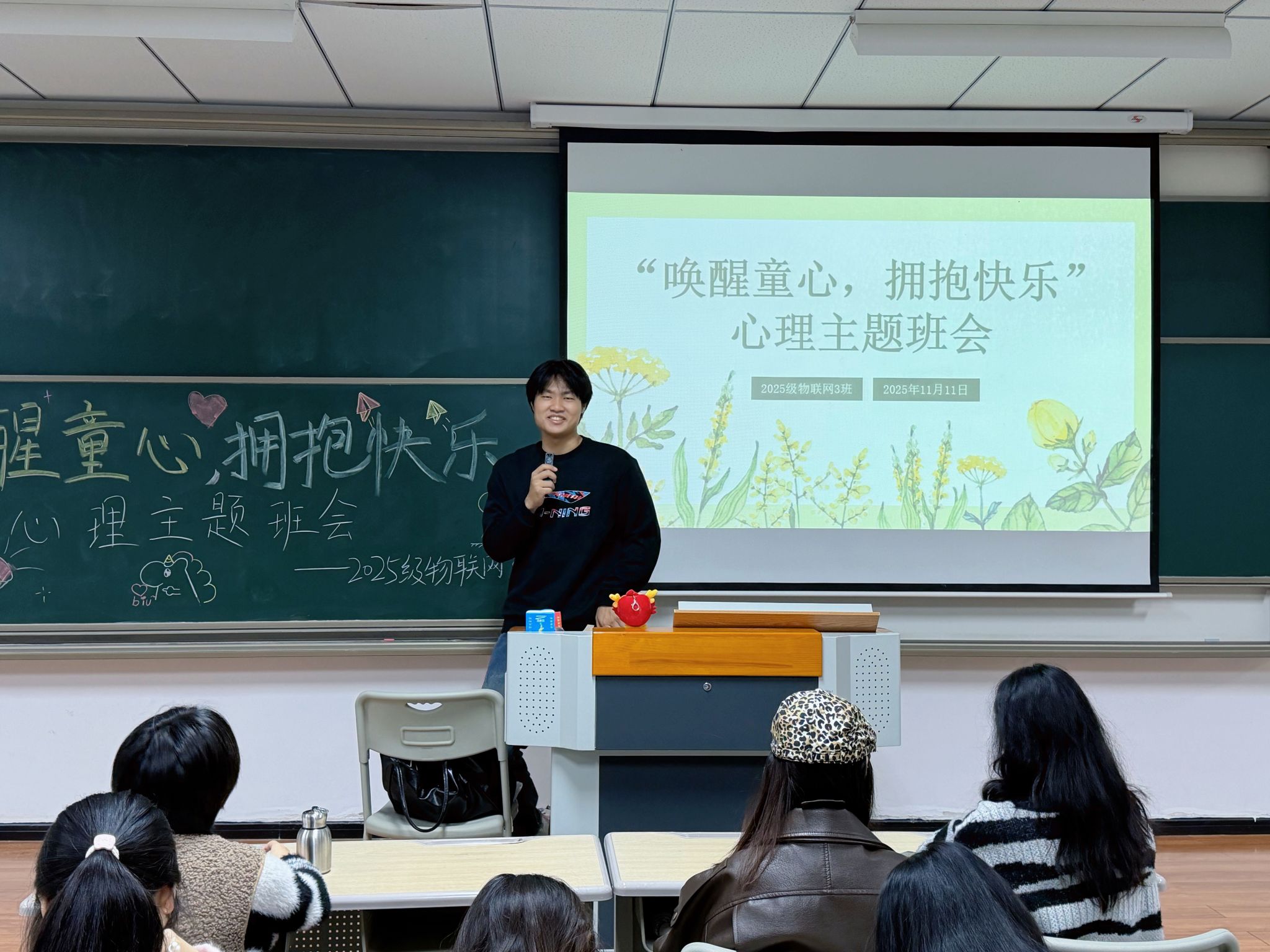 为助同学缓解学业压力、探寻内心快乐与创造力,11月11日,信息安全学院2025级物联网工程专升本3班在仁者楼305教室举办“唤醒童心,拥抱快乐”心理健康教育活动,引导大家重拾“童真”,为成长注入积极能量。