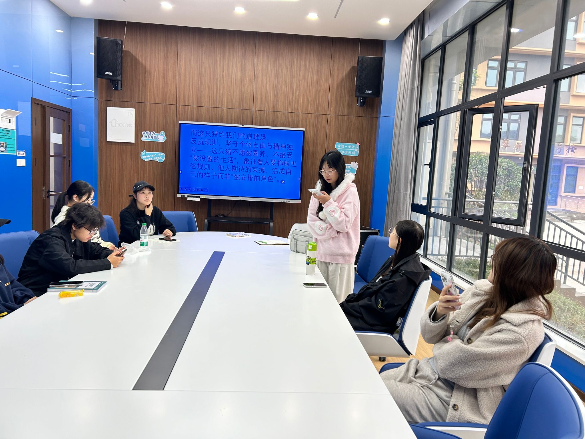 为全面贯彻党的教育方针,落实立德树人根本任务,切实实施学校移通〔2025〕372号关于印发《重庆移通学院校园经典阅读写作工程实施方案》,搭建思想交流平台,异科导师王秋月于2025年11月14日上午9:10在翠屏书院组织异科班第1、2组的同学们开展了“校园经典阅读写作工程”书籍阅读分享会。同学们围绕经典著作各抒己见,在思想碰撞中感受文学魅力,在深度交流中提升人文素养。