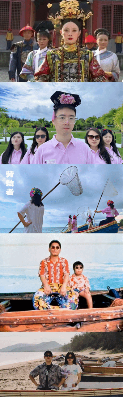 下午,各位老师带着六种风格迥异的拍摄道具在美丽的三亚进行了“创意电影摄影”。大家结合电影元素在阳光沙滩海浪中拍出了系列大片,戏剧影视学院的教师们结合《让子弹飞》《乌托邦》等经典电影的海报设计将“智媒时代下的电影教育与人才培养”的主题巧妙融入其中,展现了电影创作者的创意思维。电影评论中心的教师们则是诙谐幽默的风格,将“劳动最光荣”“甄嬛传”“city walk”等有趣的元素融入了创意拍摄,拍出了富有评论家腔调的作品。