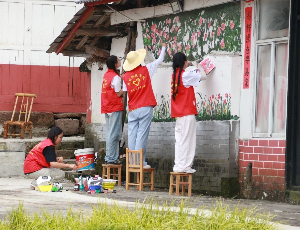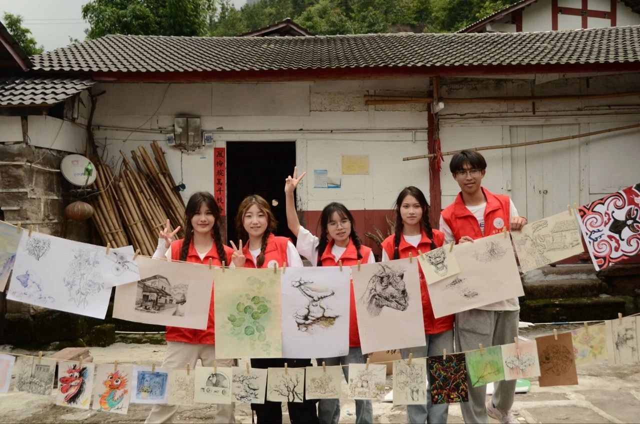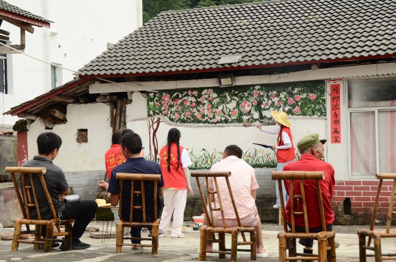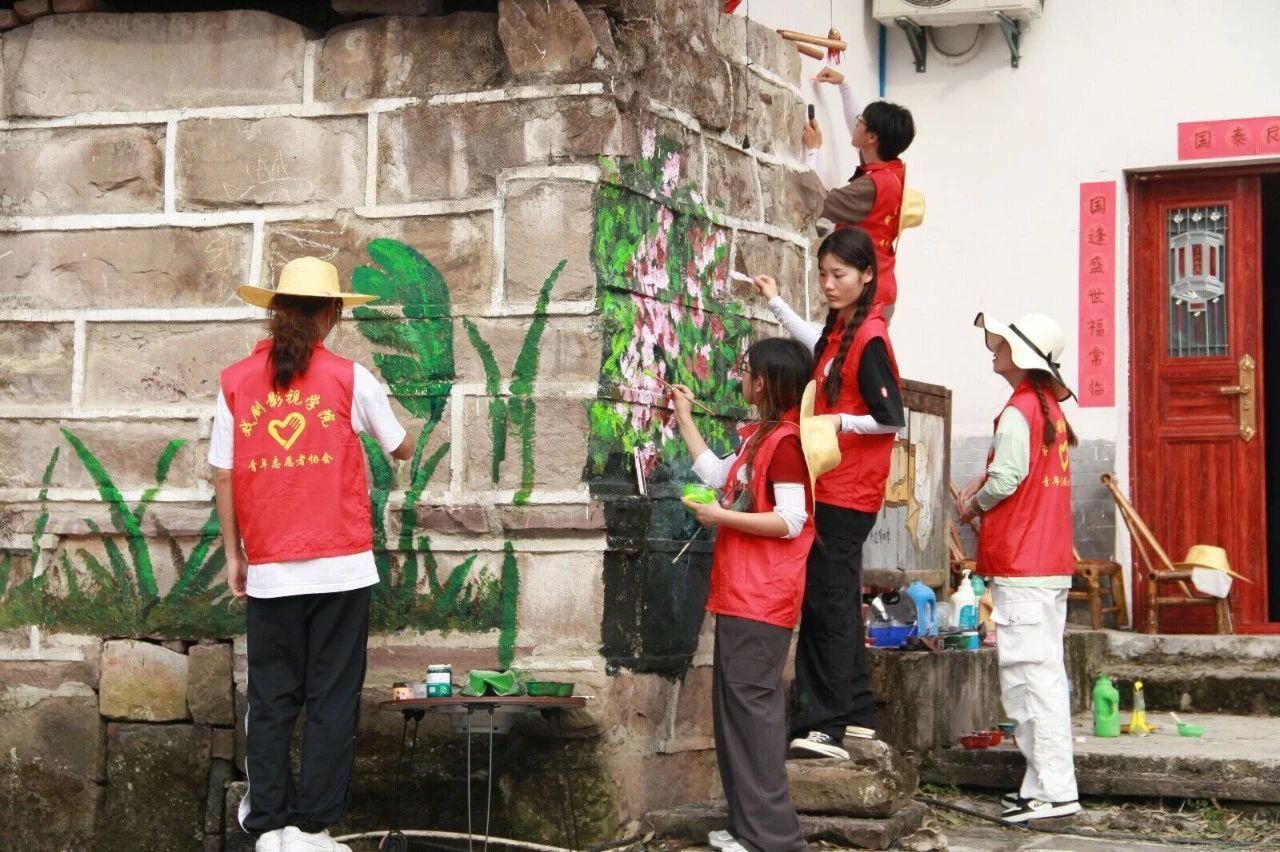 创意定格自然之美,绘岩传神艺术传承。“乘风”阶段,在红岩村的院落里,志愿者们挥动画笔,色彩斑斓的墙绘涂鸦为村落披上新装,增添了一抹亮丽的风景线。旧物改造计划更是将环保与创意完美融合,通过巧思与巧手,让一件件被遗忘的旧物重获新生,焕发出别样的光彩。艺术课堂则是另一番景象,志愿者们以一对一绘画教学的形式,生动有趣的让孩子们在轻松的氛围中体会艺术的魅力。这些创意满满的活动形式,不仅通过实际行动美化了村容村貌,增强了村落艺术气息,更如同一股清泉,让艺术之美在红岩村这片土地上生根发芽,绽放出最耀眼的光芒。