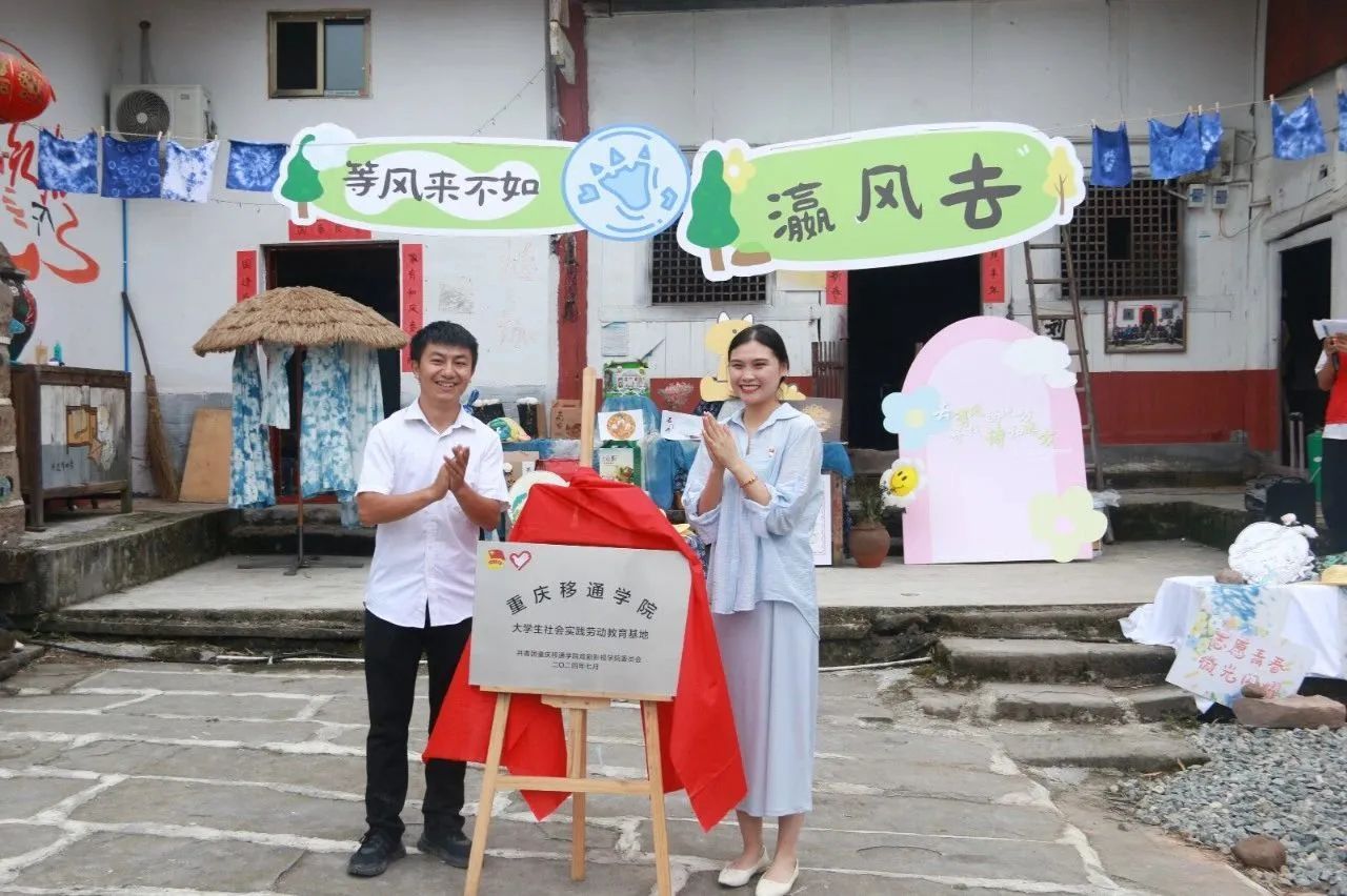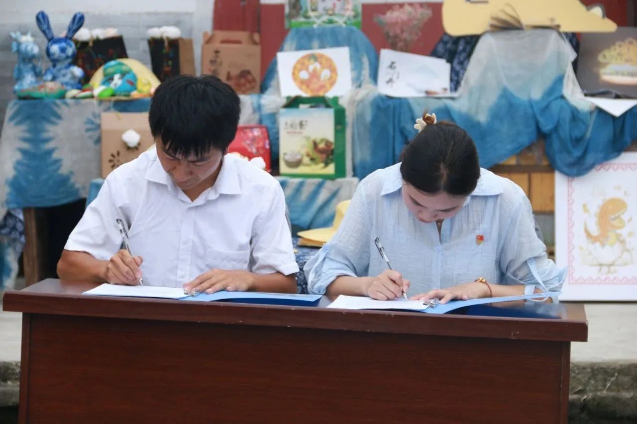 艺展芳华村晚共赏,文艺盛典揭牌启航。“追风”阶段,志愿者们展现出青年应有的青春与担当。在有风小院打造了一场主题为“等风来,不如瀛风去”的文艺汇演。现场以展览的形式陈列绘本、墙绘、文创等七天的实践成果,让村民们切实体会文化艺术的力量。文艺汇演中,志愿者们用走秀形式为大家展示本土农产品以及自主设计的文创产品,更有舞蹈表演、集体合唱、师生献唱等诸多精彩节目。更值得一提的是,“重庆移通学院大学生社会实践教育基地”签约仪式和揭牌仪式的成功举办,此次合作为双方后续在文化传承,艺术创作等方面深入交流奠定了坚实基础,为青年学子践行专业理论提供了平台,助力红岩村文化艺术快速发展。