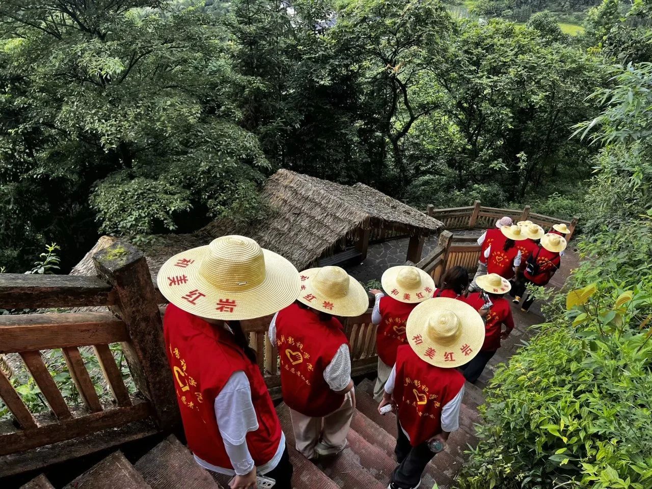 探寻红岩乡土文化,深掘古村历史底蕴。“寻风”阶段,志愿者们穿梭在红岩村的每一个角落,用心感受这片土地的历史与文化。老瀛山红岩坪科普中心的恐龙足迹群,见证老瀛山万年来的沧桑巨变。徒步丹霞长廊,不禁被大自然的鬼斧神工深深震撼。而那些被时光冲淡的民俗文化,更能深刻感受到红岩本土文化的独特魅力。志愿者们以文创、绘本、视频等形式,将“石门开”等宝贵的民俗文化记录下来,让红岩村乡土文化得以更好地传承与发扬。