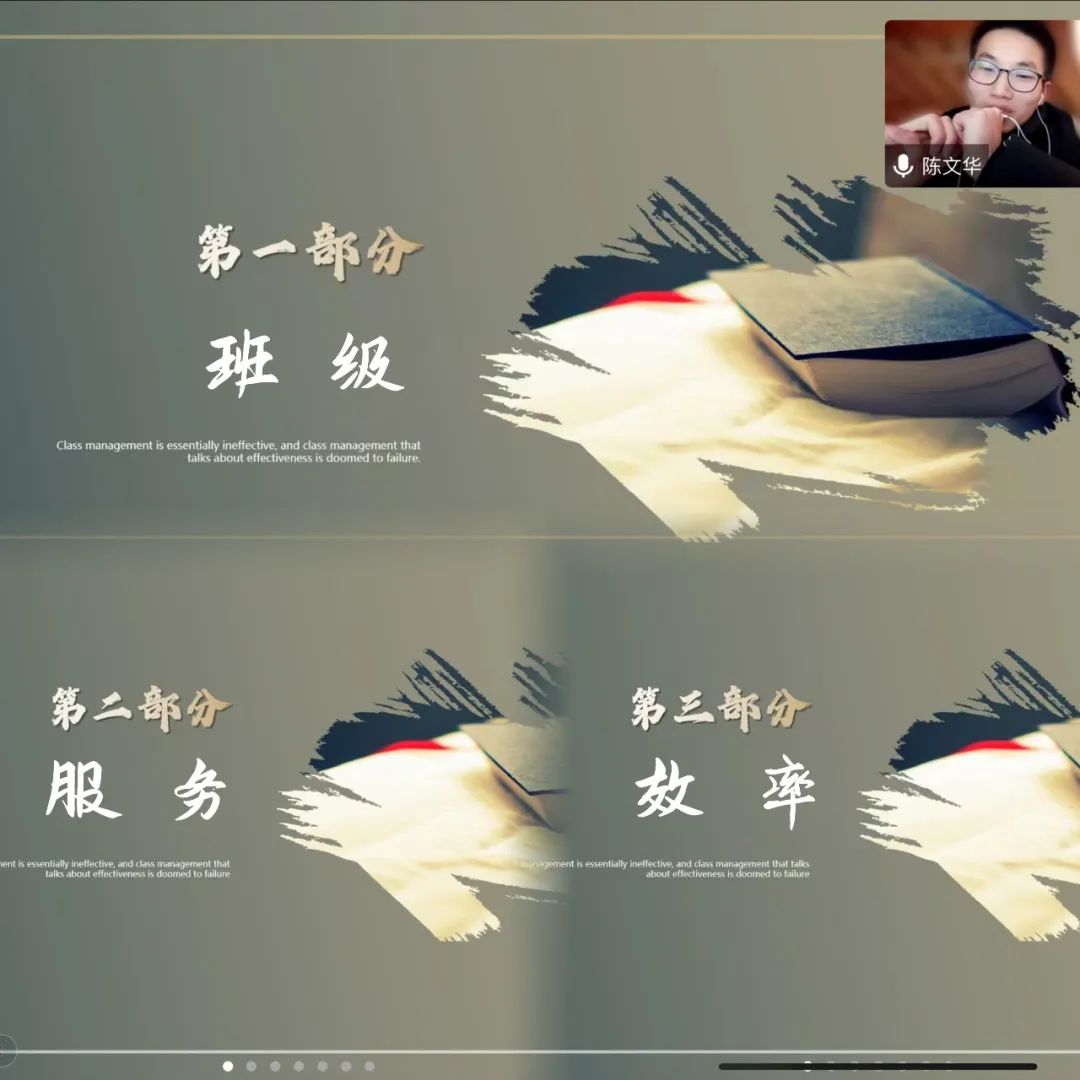 我将班委工作分为两个部分,前者不能谈效率,而对后者而言效率就是生命”。文华学长将班委的整体工作分为两个板块。其一是日常工作板块,主要工作内容是对班级的日常管理、各种材料证明的收发等;其二是能力提升板块,主要内容是各种海报、PPT的制作。文华学长在讲述中表示:就班级的常规管理而言,不应当谈效率,而是谈态度。日常管理是繁琐的,空谈效率只会破坏同学们与班委之间的和谐关系,在极端情况下甚至会引起两者的对立事件发生,在日常管理中只要将对应工作按时保质保量完成就是最好的效率。而在能力提升中重点突出“主动性”、“执行力”两点,面对此类工作发挥自身主观能动性,主动着手、提前上手、想在前面,干净漂亮地完成工作。