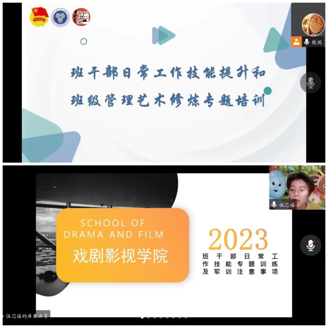 一朵鲜花打扮不出美丽的春天,一个人前进总是单枪匹马。为了给正在军训的戏娃们分享“过来人”的宝贵经验,同时提高班干部们的日常工作能力与工作效率,2023年2月21日中午12时,戏剧影视学院班干部日常工作技能和班级管理艺术修炼专题培训第三期正式展开,本期培训邀请到了原动画1-3班班导师、淬炼·国际商学院工商管理系21级30班的班长伍芯瑶学姐主讲,由辅导员助理殷瑞主持。