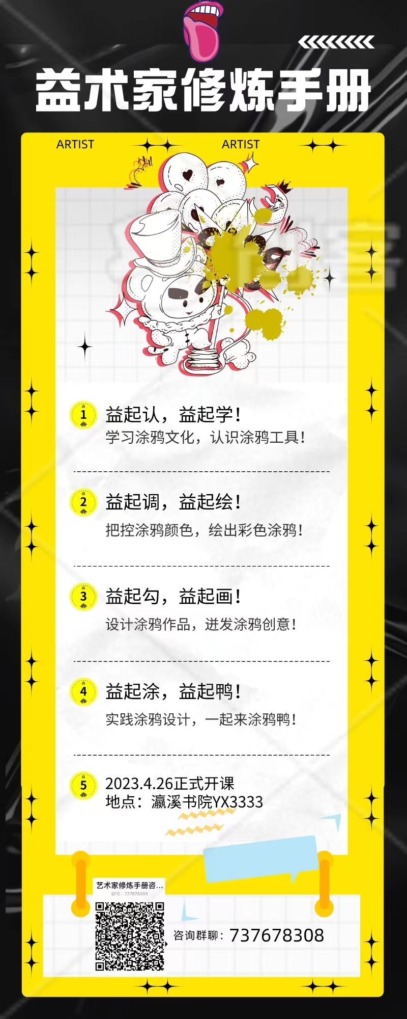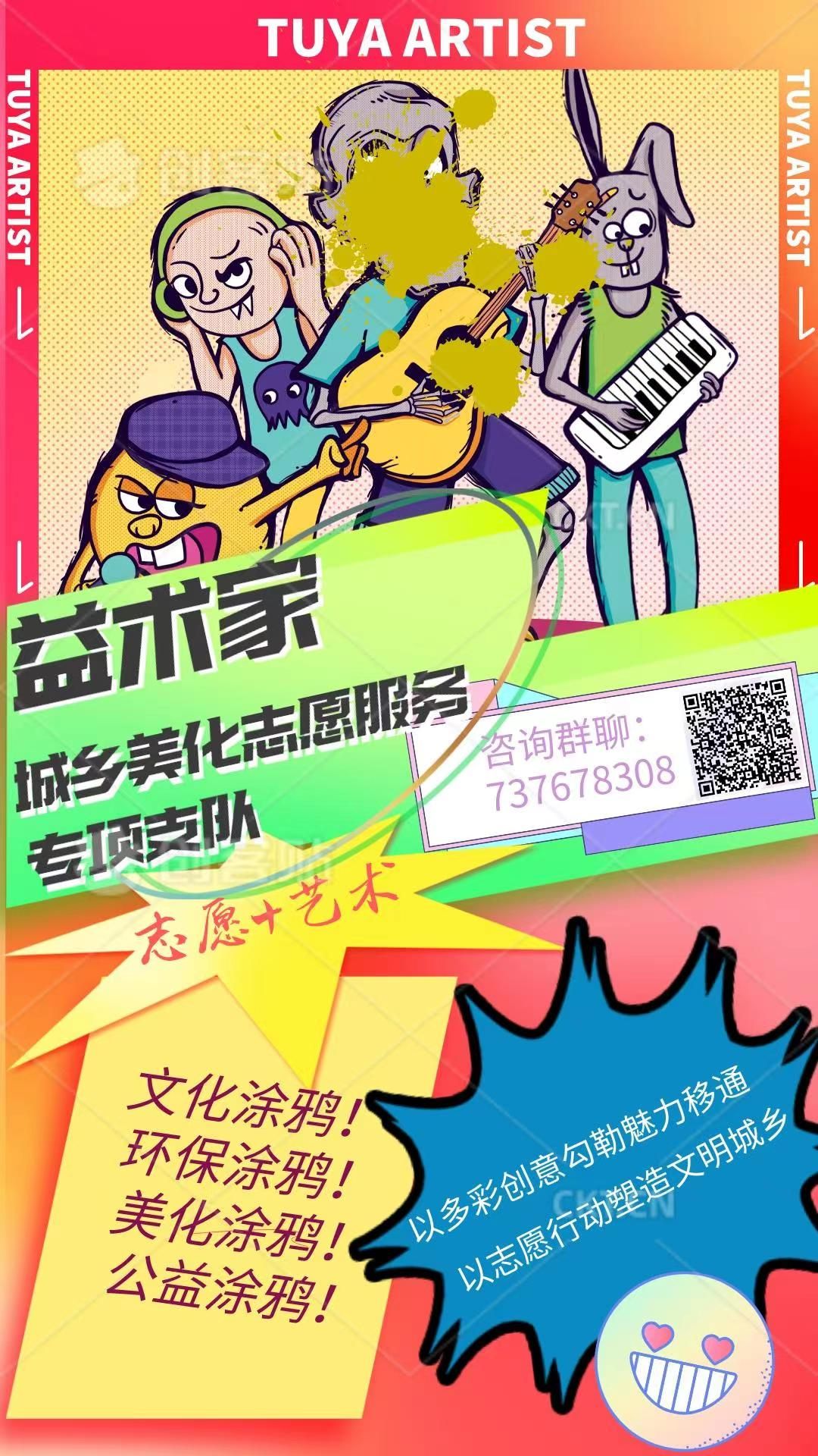 益术家支队于202210月成立,旨在通过文化涂鸦、环保涂鸦、美化涂鸦、公益涂鸦等主要形式,结合戏剧影视学院动画专业的优势与特长,前期在校内开展涂鸦墙、涂鸦井盖、涂鸦垃圾桶等作品创作,后期逐渐打造益术家品牌力、扩大活动范围,针对綦江各社区开展“清洁家园,旧墙美化”的志愿服务活动,积极洽接资源,助力打造移通学子定制版綦江网红打卡墙。经过6个多月的摸索和试验,益术家共计吸引全校63名涂鸦志愿者,并主动加入横山书院和瀛溪书院涂鸦墙的创作中。
