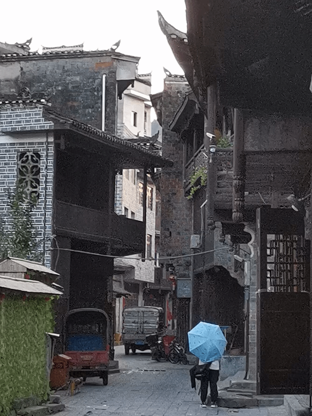 写生第一天,我们去参观了当地一所很有历史的中学,在出校园的后,大家都不约而同的朝着来时的方向走去,我来了兴致拿起手机随手一拍,拍完之后我才发现,在暗色调的古城建筑里,一抹孤独的蓝正在向大部队的反方向走去,而那抹蓝也成为了暗色建筑的一点高光。