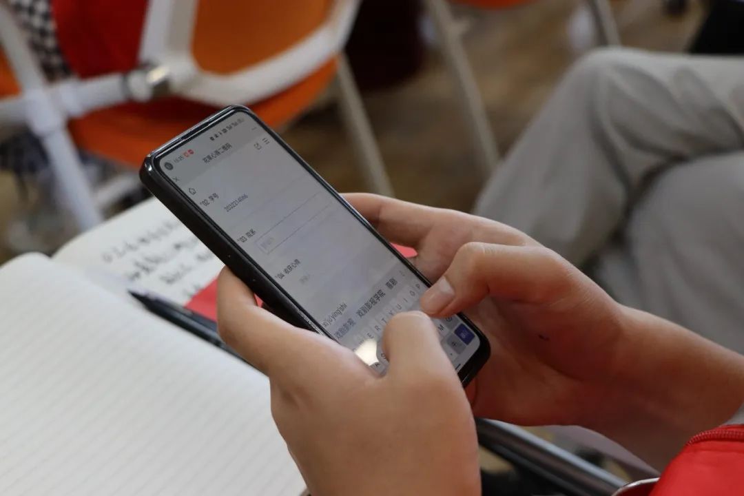 最后,志愿者将盛满同学们关于志愿的想法、疑惑的收集卡的箱子端到前台,由梁高智同学随机抽取收集卡,两位老师对收集卡上的问题进行解答。“喜欢志愿服务,但不敢同他人交流”“担心自己能力有限,搞砸事情拉同学们的后腿”......同学们的问题很多,却不敢当众提问,很多想法只能通过纸条来表达。曾玉娇老师提到:“万事开头难,勇敢走出第一步,做志愿服务更要学会表达自己,学会聆听他人的诉求,敢于接受试错的过程。”经过将近半小时的志愿访谈,两位老师在解答同学们问题之余,还讲述了自己在大学期间的志愿服务经历和收获,在场同学听得津津有味,大家都表示收获多多,纷纷扫描本次培训心得二维码填写自己的心得感悟。