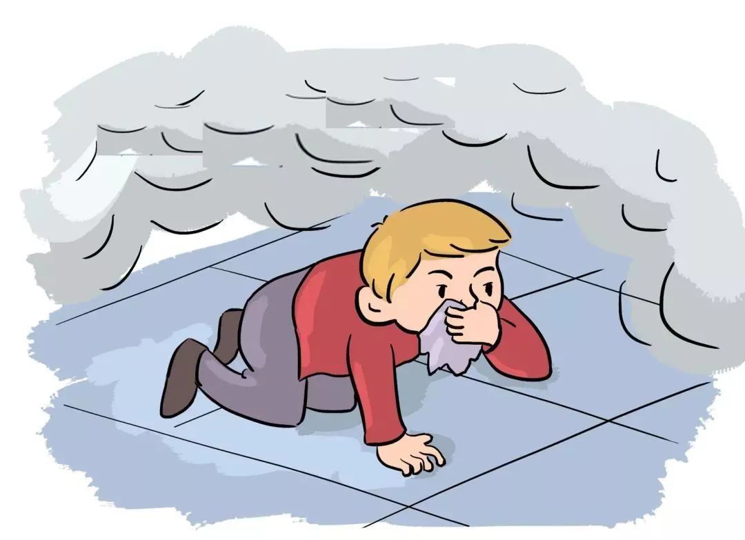 由于发生火情时浓烟是往上走的,因而火场逃生时务必用湿毛巾捂住口鼻,有逃生条件的还可用水浸湿衣物或棉被护住身体后尽量贴近地面匍匐前进,快速逃离火场。