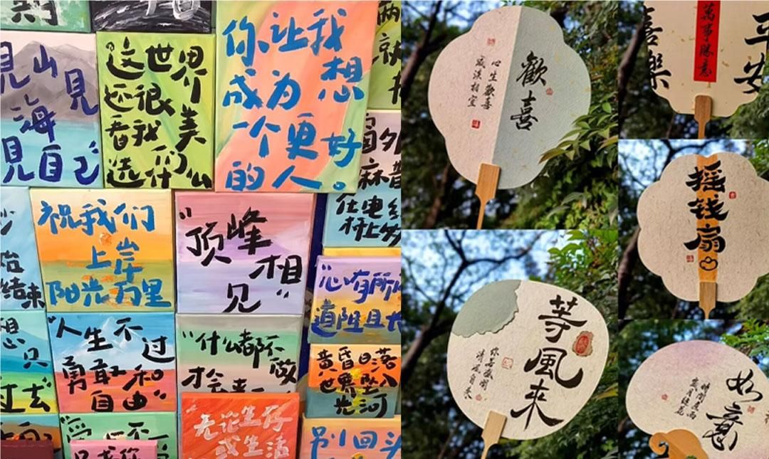通过在画布,团扇上作画,写下印象深刻的经典台词