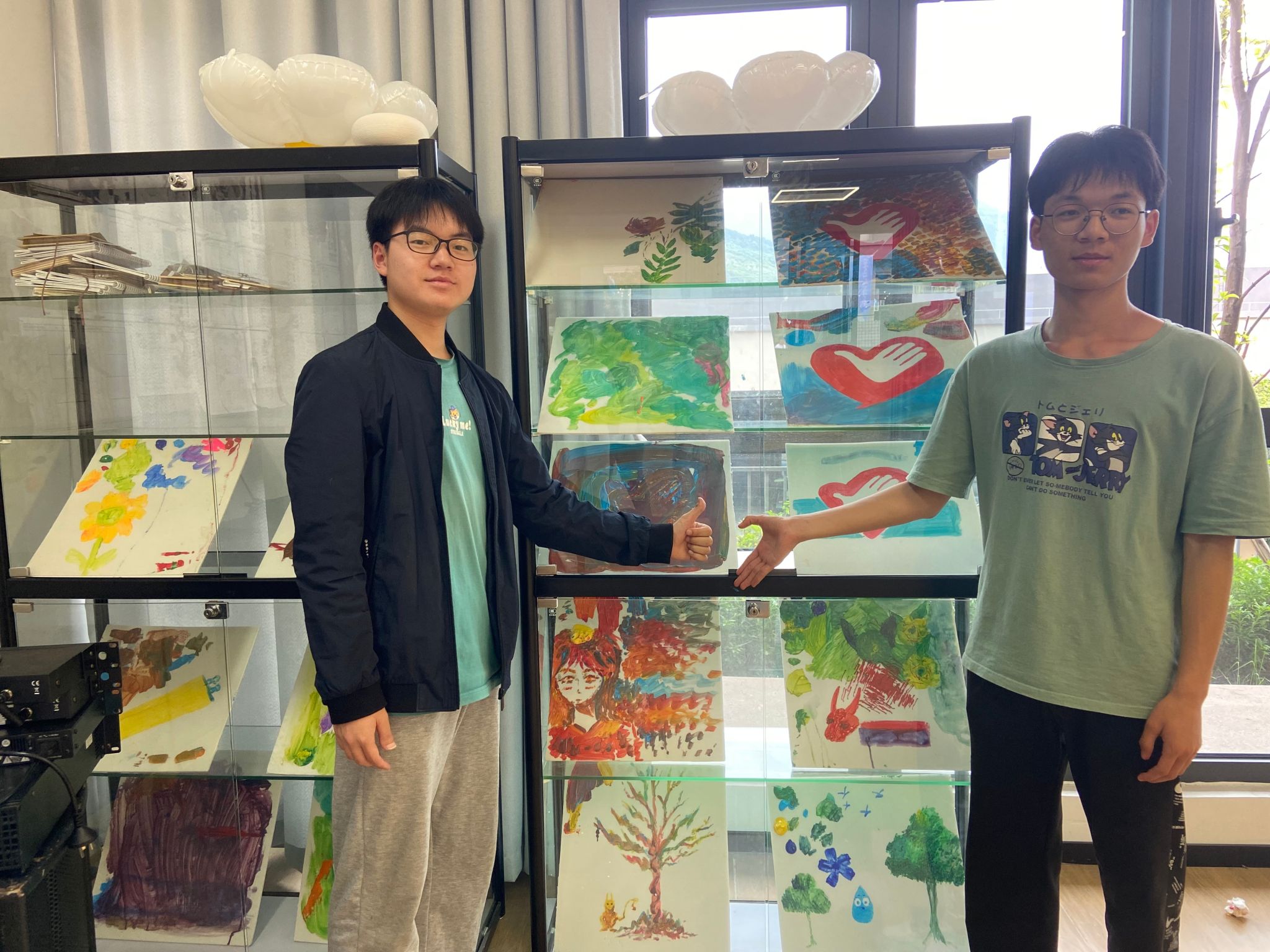 课程结束后,支队同学将自己的作品放置在戏剧影视学院工作室的展示窗,他们希望来往工作室的师生都可以看到他们的作品。此次“益起调,益起绘”第二期课程到此正式结束,支队员们对益术家修炼手册的越来越感兴趣,也更加憧憬通过系统的学习之后能将自己的作品带出校园、走进社区。希望大家能在下一期的益术家修炼手册的课程中有更多收获。