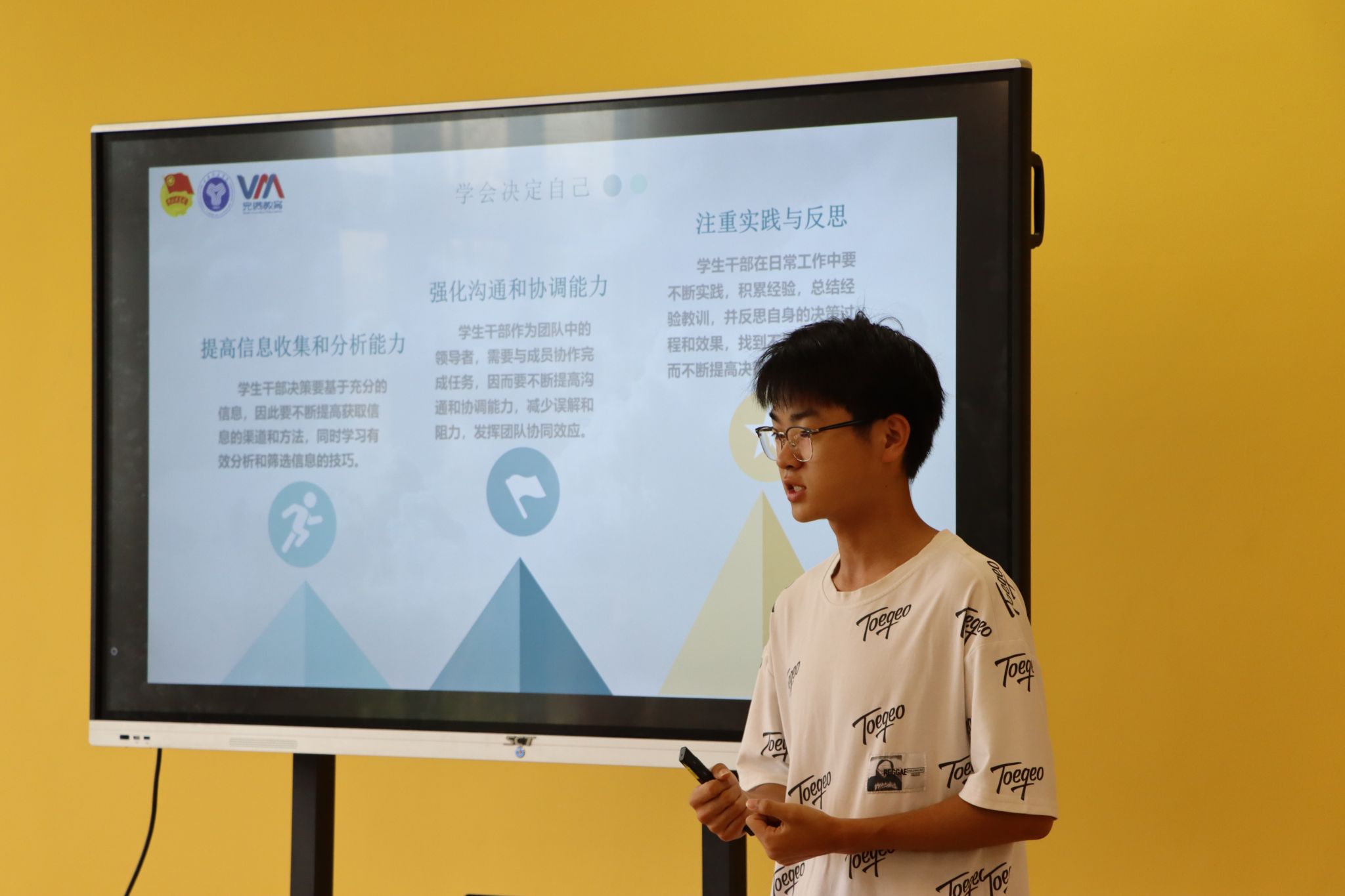 一个人的决策力并不是与生俱来的,需要不断的尝试突破自我、挑战自我、敢于做出选择。团委组织部干部谭国平学长从自身经历出发,从决策意识、责任意识和自信心三个方面位大家展开分享。谭学长从“提高信息收集和分析能力”、“强化沟通和协调能力”、“注重实践与反思”三个维度引导同学们树立决策意识,从“持续学习提升自己”、“培养掌握核心价值观”、“持续沟通改进工作”三个方法交流学生干部应当具备的责任意识,鼓励同学们勇敢上台、勇于尝试从而提升自信心。在座同学听了学长的分享后,眼神里满是坚定。