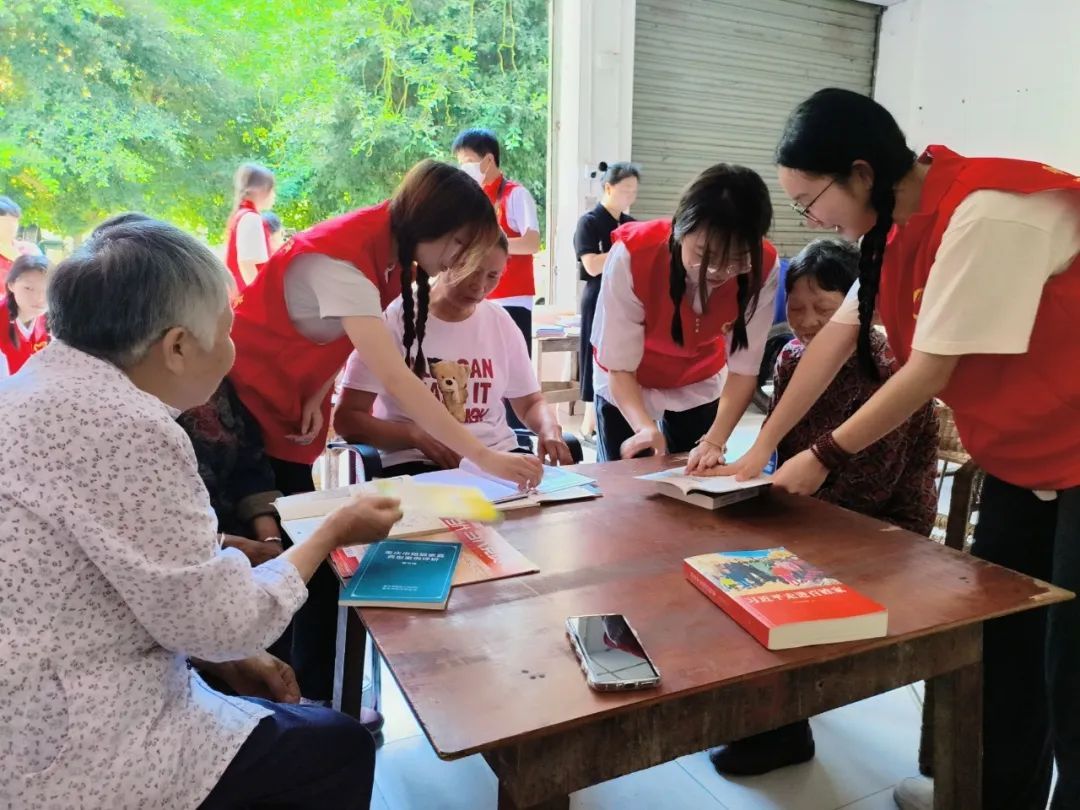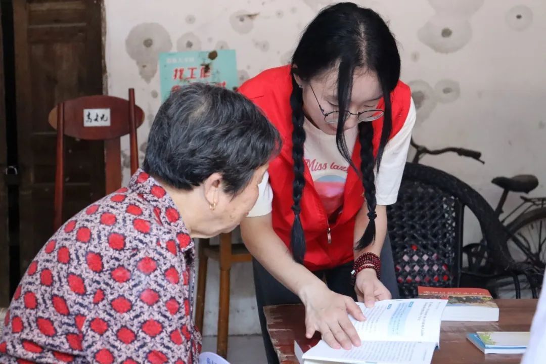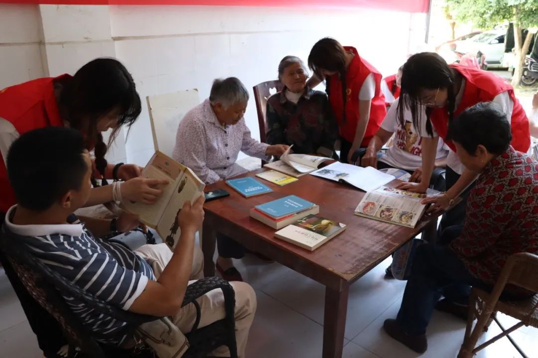 活动开始,居民们挑选自己喜欢的读本,志愿者们纷纷化身小老师,根据不同人群选择的不同书本进行一对一、点对点的深入探讨与交流,一个个性格鲜明的人物形象,一行行富含哲理的好词佳句,一篇篇曲折离奇的故事情节,让大家尽情地畅游与沉浸在有趣而神秘的“书香圣地”。